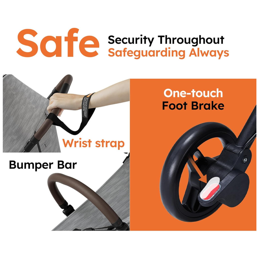 Diga adeus aos carrinhos volumosos que tornam as viagens um incômodo! O Carrinho de Bebê da MAMAZING apresenta um design compacto que se dobra de forma eficiente em um tamanho pequeno. Com apenas 5,2 kg, graças ao seu avançado quadro de fibra de carbono, garante uma experiência sem complicações onde quer que você vá. Este material inovador não só proporciona durabilidade excepcional, mas também permite uma construção incrivelmente leve, facilitando o armazenamento em porta-malas ou compartimentos aéreos. O mecanismo de dobrar e desdobrar é simples e rápido, permitindo que você se concentre em criar memórias com seus entes queridos. O Carrinho de Bebê oferece um dossel com proteção UV que protege seu pequeno dos raios solares nocivos, proporcionando um ambiente fresco e sombreado para relaxar. Com amplo espaço de armazenamento, incluindo cesto sob o assento e um organizador com suporte para copo isolado, bolso para celular removível e alça para ombro, mantenha os itens essenciais sempre à mão. O foco na segurança é evidente com o arnês de 5 pontos e sistema de freio no pé. Adequado para bebês a partir de 6 meses até 22,7 kg e altura máxima de 100 cm. O Carrinho de Bebê Ultraleve atende ou excede os mais altos padrões de segurança estabelecidos pelo CPSC e ASTM.