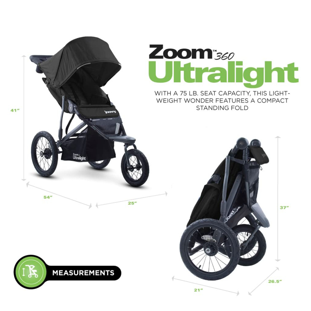 O carrinho vem em quatro cores diferentes e atende aos requisitos de tamanho da Disneylândia e do Disney World. Com um peso de apenas 11,66 quilos, o Zoom360 Ultra light é um dos carrinhos de bebê mais leves do mercado. Construído para durar e projetado para a família, este carrinho de bebê combina qualidade e conforto para permitir que os pais se mantenham saudáveis e felizes, produzindo crianças felizes e saudáveis.