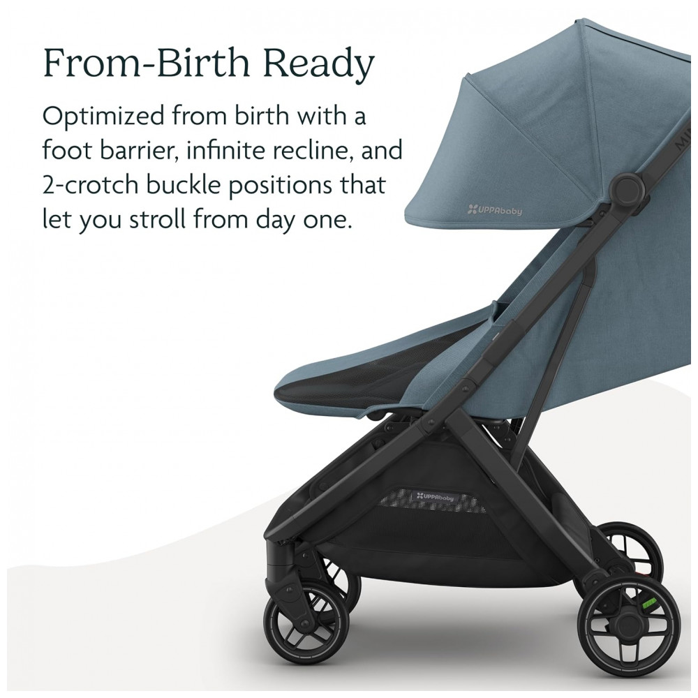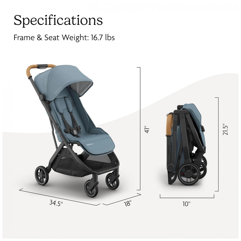 Carrinho de Bebê UPPAbaby Minu V3 Dillan Azul Stone/Carbono Sand Couro Dobrável com uma Mão Capota UPF 50+ 1 Lugar