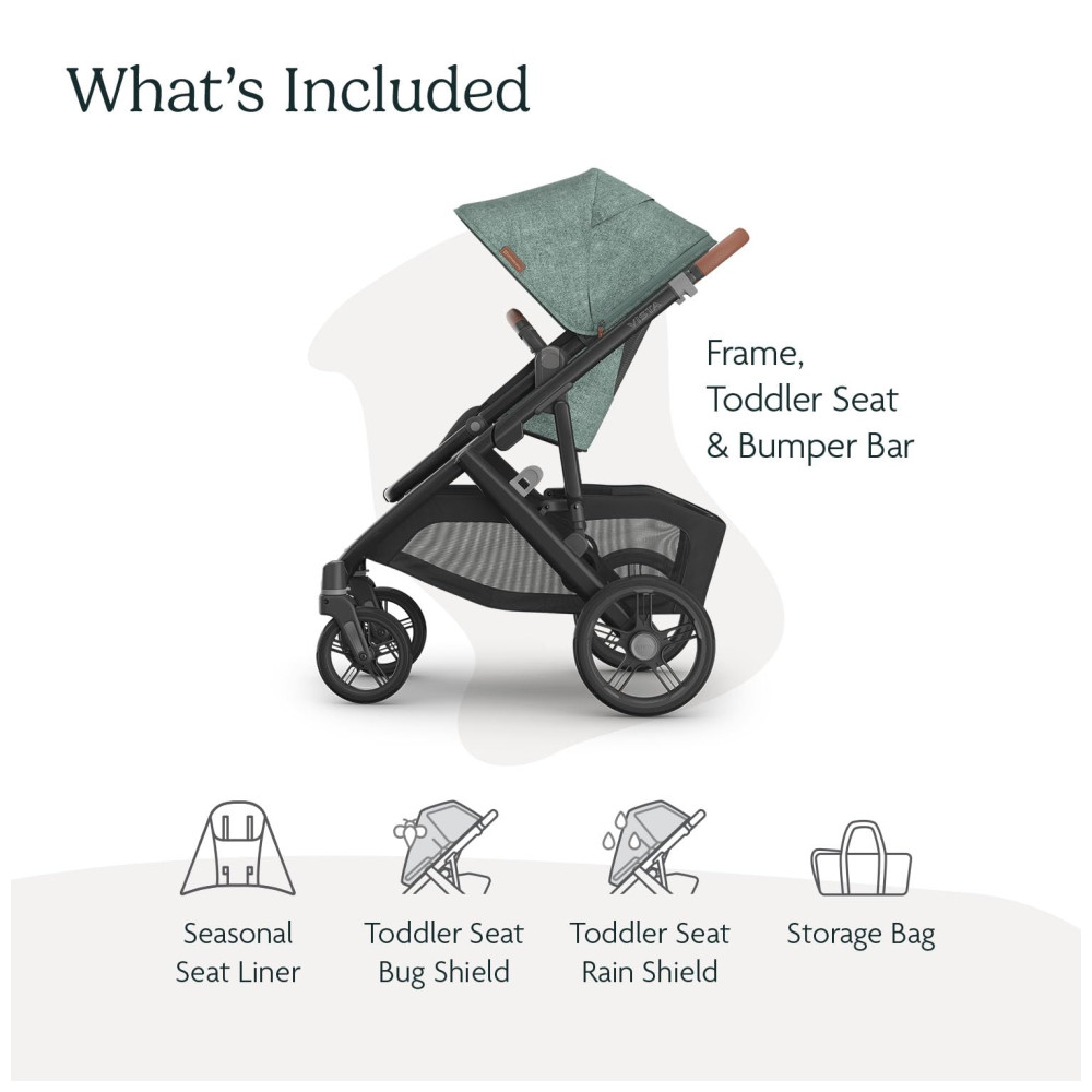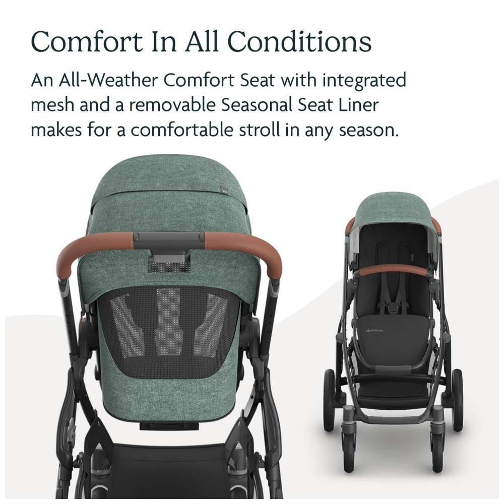 Carrinho de Bebê UPPAbaby Vista V3 com Assento de Bebê Capa Anti-insetos e Capa de Chuva – Gwen Verde Mélange – Completo com Bolsa