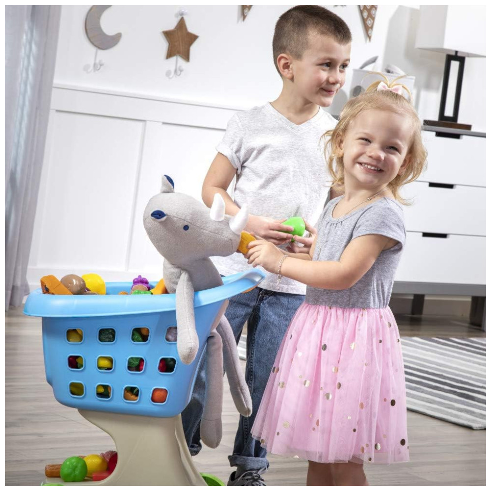 Este fantástico conjunto de brinquedos não só incentiva a brincadeira de colocar e tirar, mas também ajuda a desenvolver habilidades motoras essenciais enquanto os pequenos andam por aí, colocando seus brinquedos favoritos na cesta espaçosa. O espaçoso carrinho de compras de brinquedos garante que todos os seus preciosos tesouros permaneçam seguros e bem organizados após o término da brincadeira.