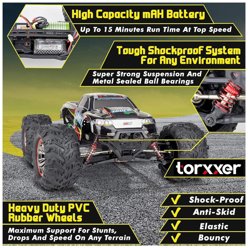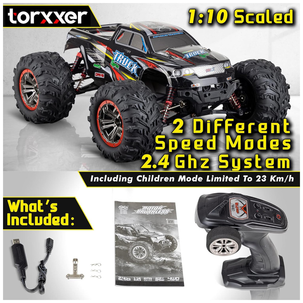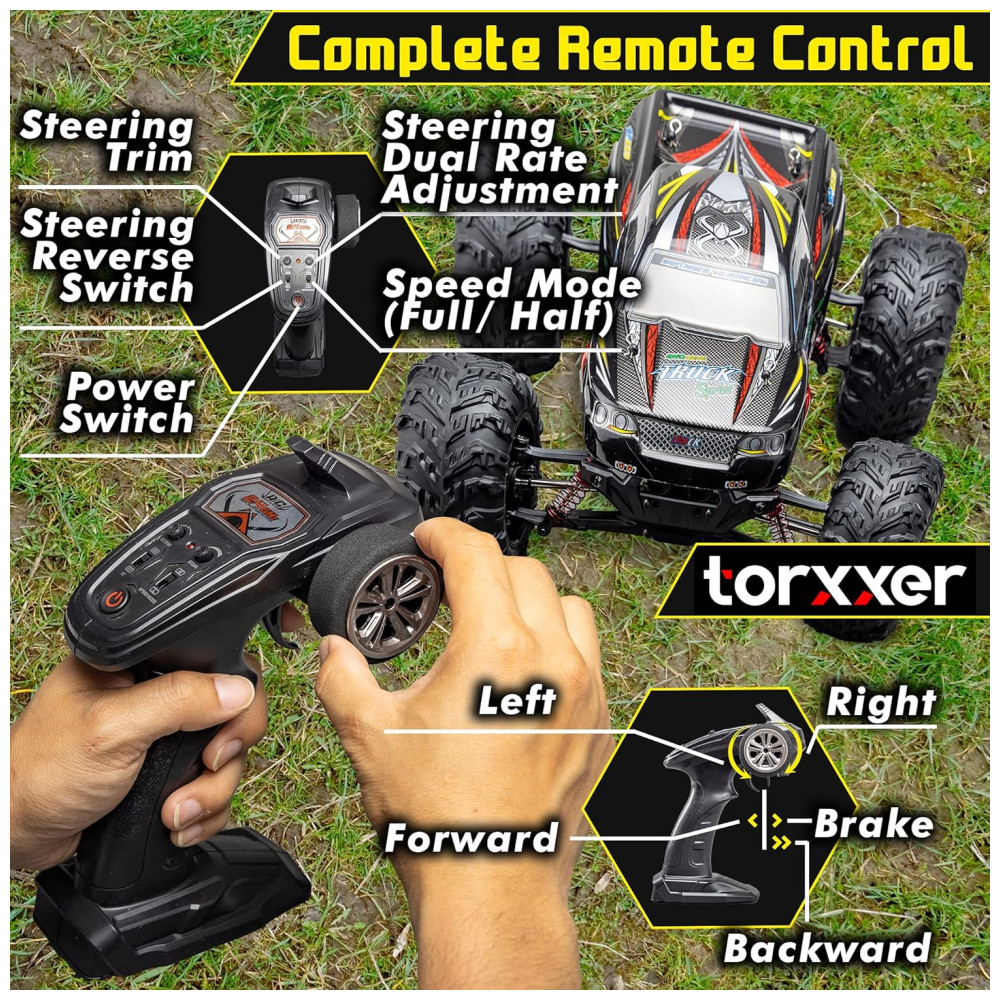 Carrinho de Conole Remoto para Adultos Off Road 110 Escala Até 48 km por hora Recarregável TORXXER TR 9125 Preto
