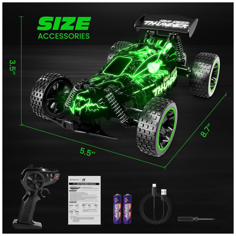 Fácil de controlar: Equipado com controlador de 2,4 GHz, facilita a operação. Dois ou mais veículos RC podem competir juntos sem confusão remota.