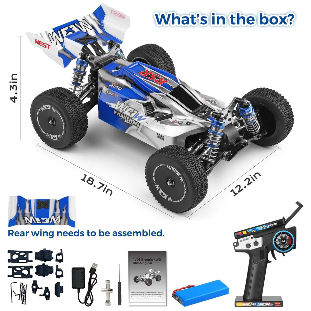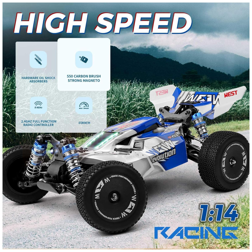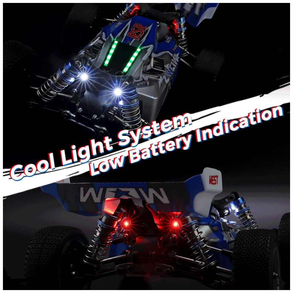 Atualize seu carro de controle remoto com o WLtoys 144011, um buggy RC rápido equipado com um motor 17500RP 550 e um dissipador de calor de metal, permitindo velocidades máximas de até 65kmh. Com um sistema de tração nas quatro rodas e pneus de borracha de alta qualidade, este caminhão RC pode lidar com vários terrenos com facilidade. Além disso, o carro possui um sistema de luzes projetado com faróis, lanternas traseiras e luzes do acelerador para trazer mais diversão.
