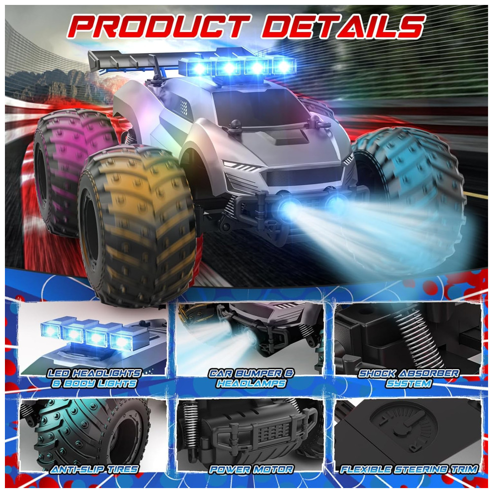 Tempo de reprodução de até 120 minutos O carro rc vem com duas baterias recarregáveis de grande capacidade de 1000mAh para o carro e 3 baterias aaa para o controlador, só precisa de uma etapa de substituição simples, você pode jogar por até 120 minutos no total