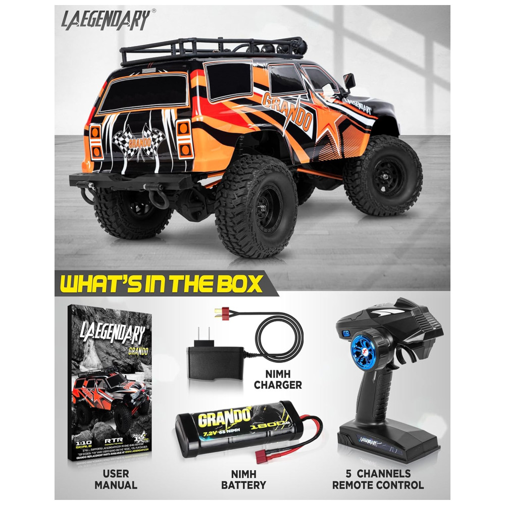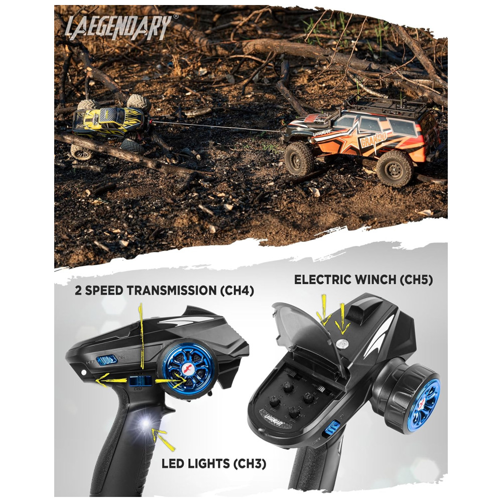Carrinho de Controle Remoto 4×4 Off Road com Luzes de LED Recarregável LAEGENDARY GRANDO Preto