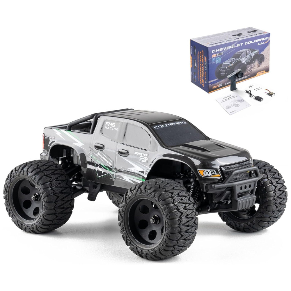 Carrinho de Controle Remoto 4×4 Off Road Escala 1:24 com Bateria de 900mAH BEEZRC FMS 1 24 Monster Truck RC Preto