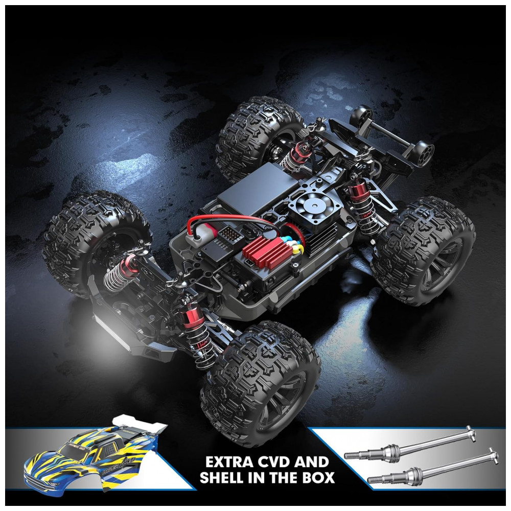 Excelente Desempenho e Compatibilidade: Com uma bateria LiPo recarregável 2S 7,4V 1050mAh 25C e um motor sem escova, este carro pode atingir mais de 27 mph 45 km, h, proporcionando emoção para adultos. O ESC inteligente independente 2S, 3S 45A suporta o sistema de energia 3S para velocidades ainda mais rápidas.
