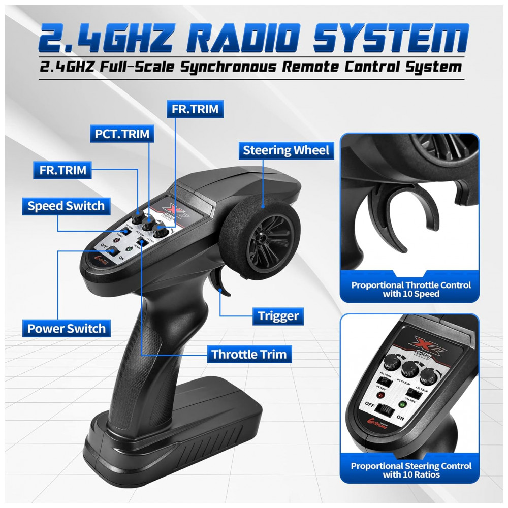 2 Pacotes de Carroceria RC e Modo de 2 Velocidades: Ele vem com uma carroceria adicional na cor azul, permitindo que você troque entre as carrocerias do caminhão. O transmissor de 2,4 GHz tem um alcance de até 80 metros 262 pés e oferece controle altamente responsivo de direção e aceleração. O carro RC possui um modo de alta velocidade 68 km, h e um modo de meia velocidade 34 km, h, que podem ser alternados para uma experiência de direção variada.