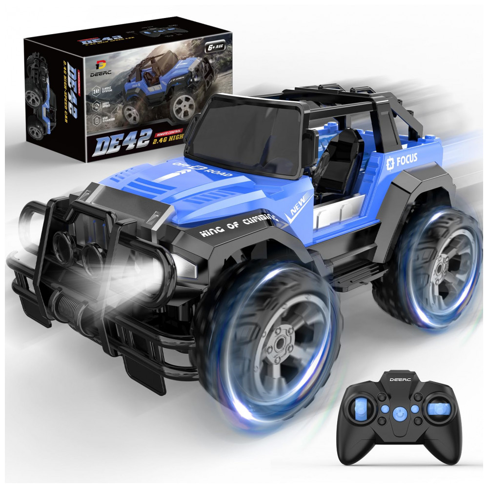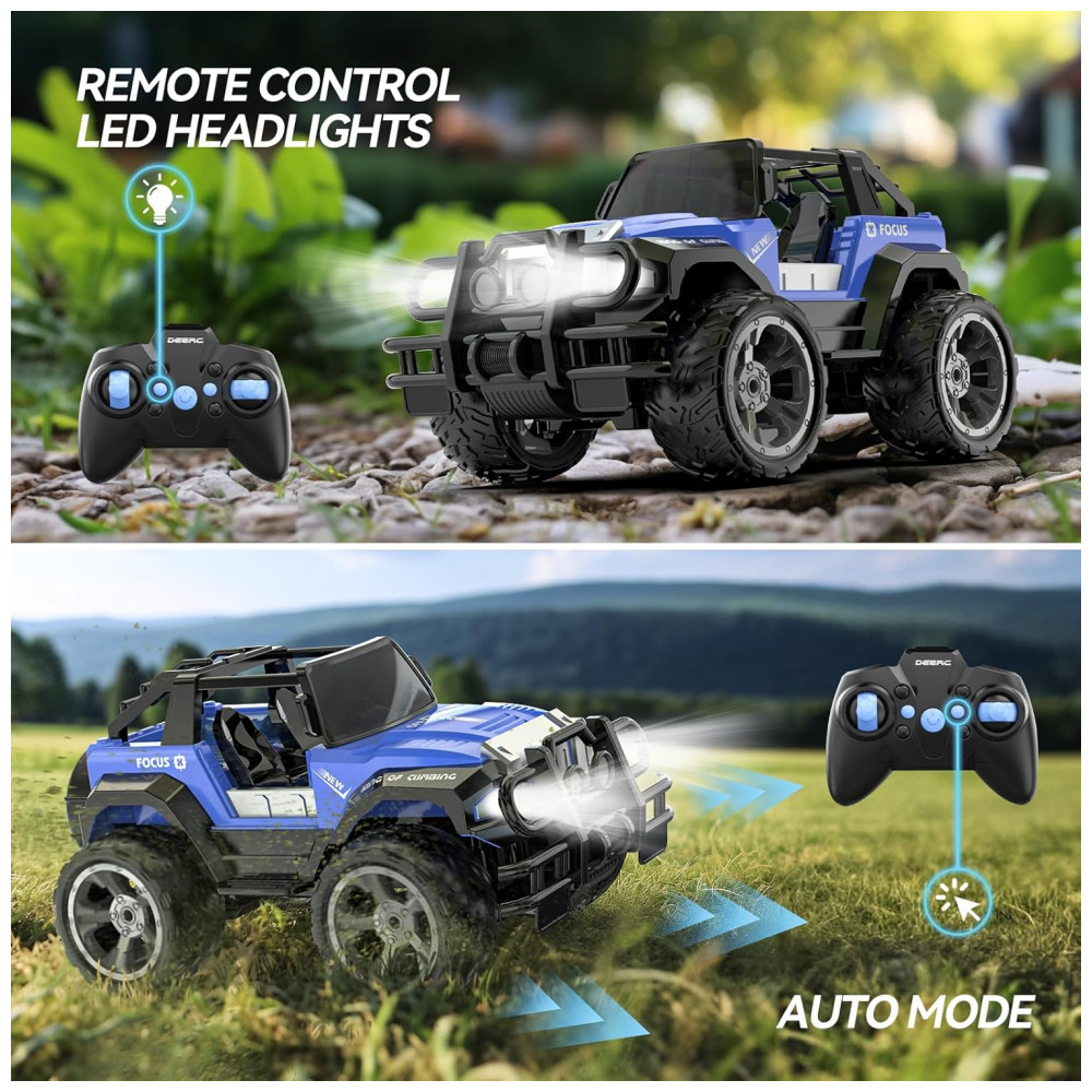 Carrinho de Controle Remoto 80 Min de Ação com Modo Off Road Automático DEERC DE42 Azul