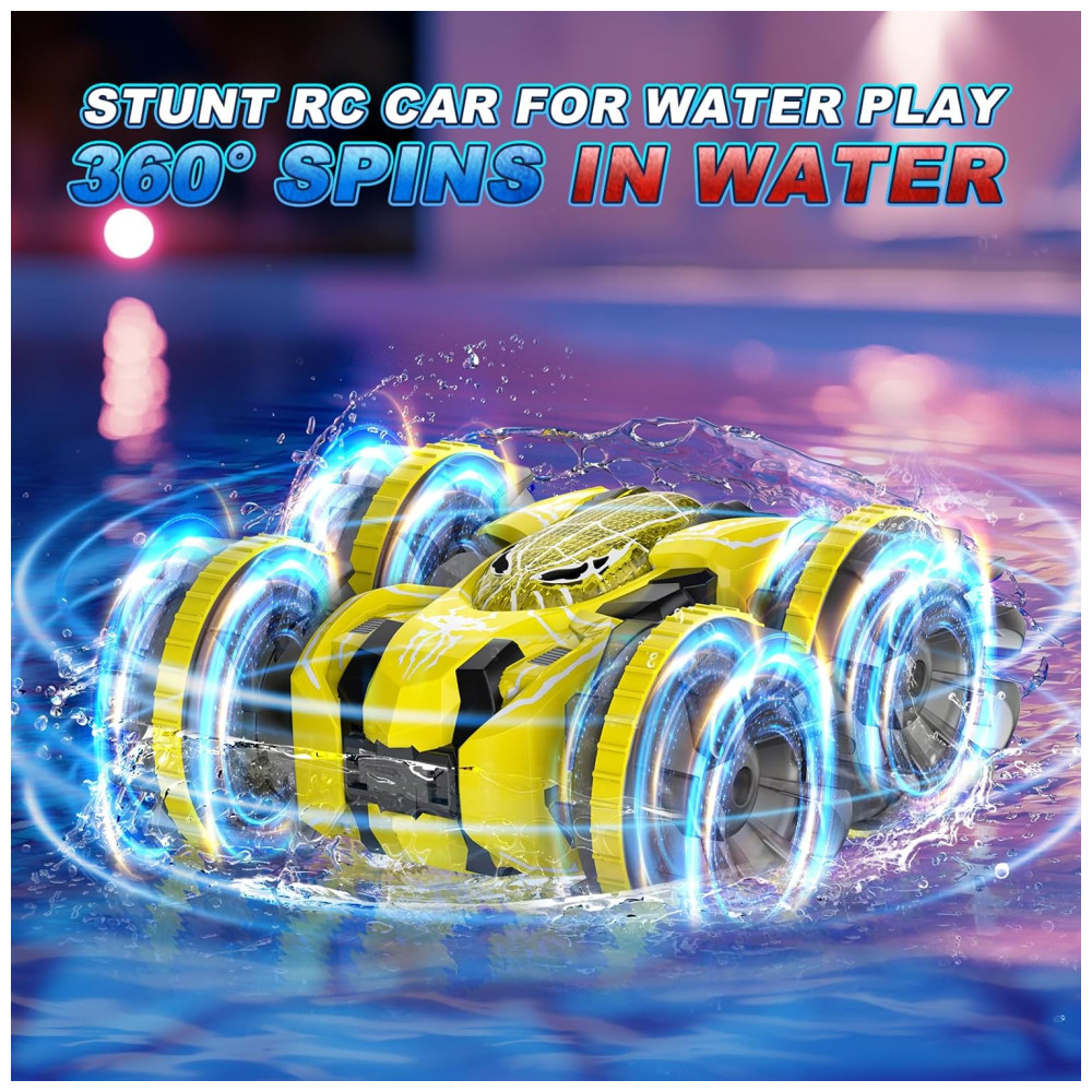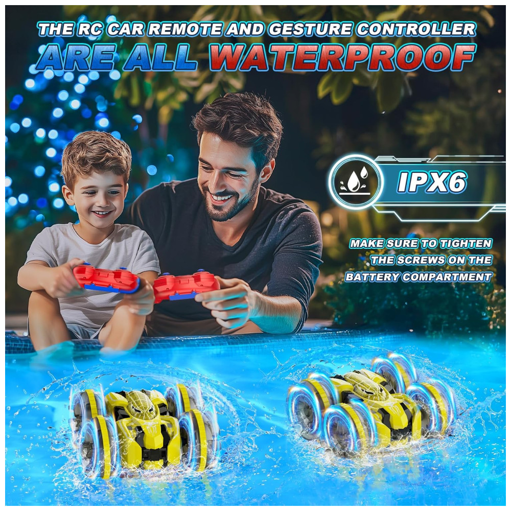 Este carro de controle remoto é totalmente à prova d’água, permitindo que ele seja utilizado tanto em terra quanto na água sem preocupações. Com materiais de alta qualidade, foi cuidadosamente projetado e testado para garantir durabilidade e estabilidade. Equipado com um motor de alta eficiência, oferece forte potência para corridas em terra e manobras aquáticas. Com suporte a jogos multiplayer, tecnologia de controle remoto 2.4GHz e LED lights, é um presente divertido e emocionante para crianças acima de 4 anos.