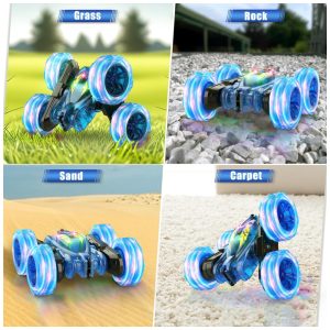 Carrinho de Controle Remoto com Luzes Coloridas e Recarga Rápida USB-C – Veículo RC de Acrobacias 4WD Recarregável Ideal para Presente – RacingFun