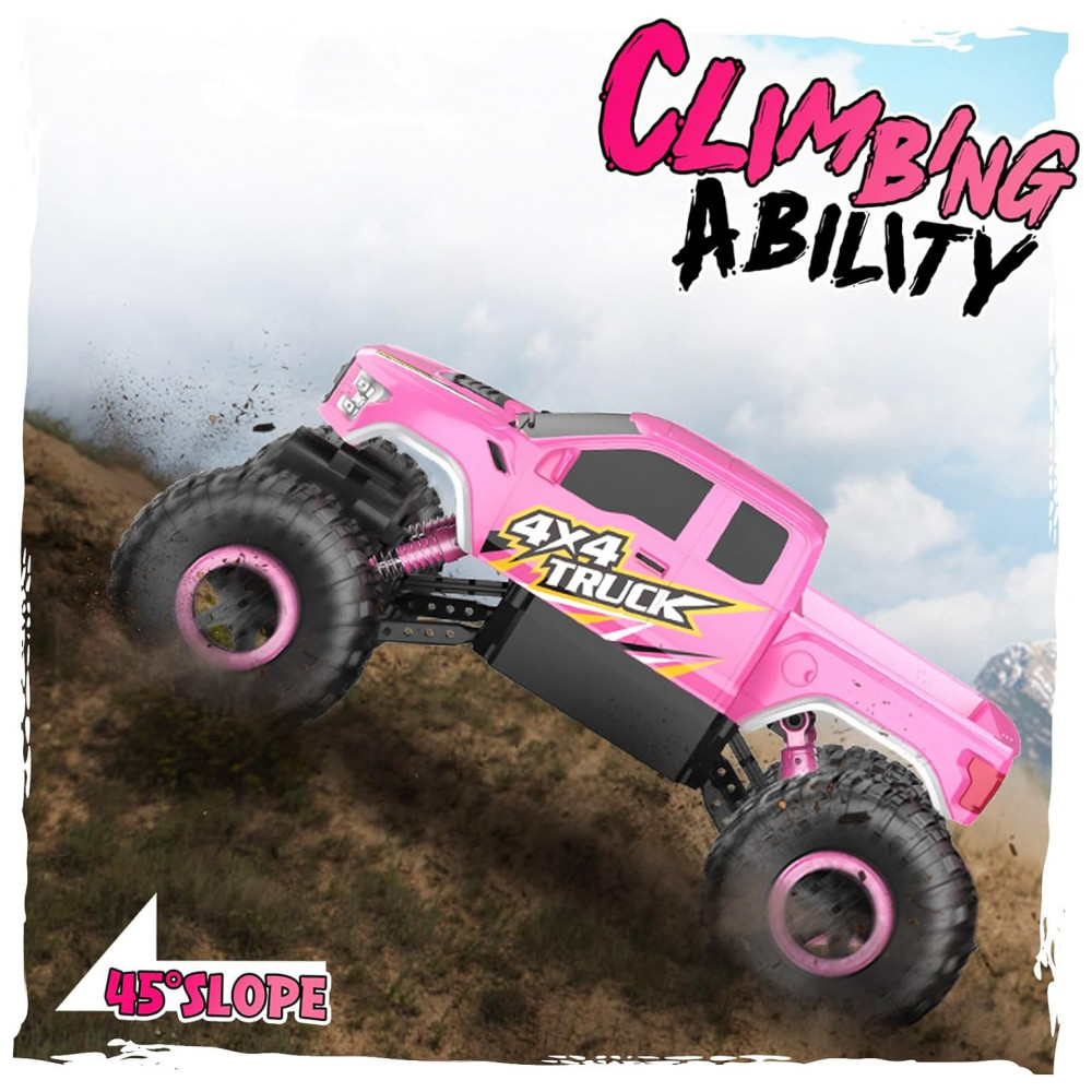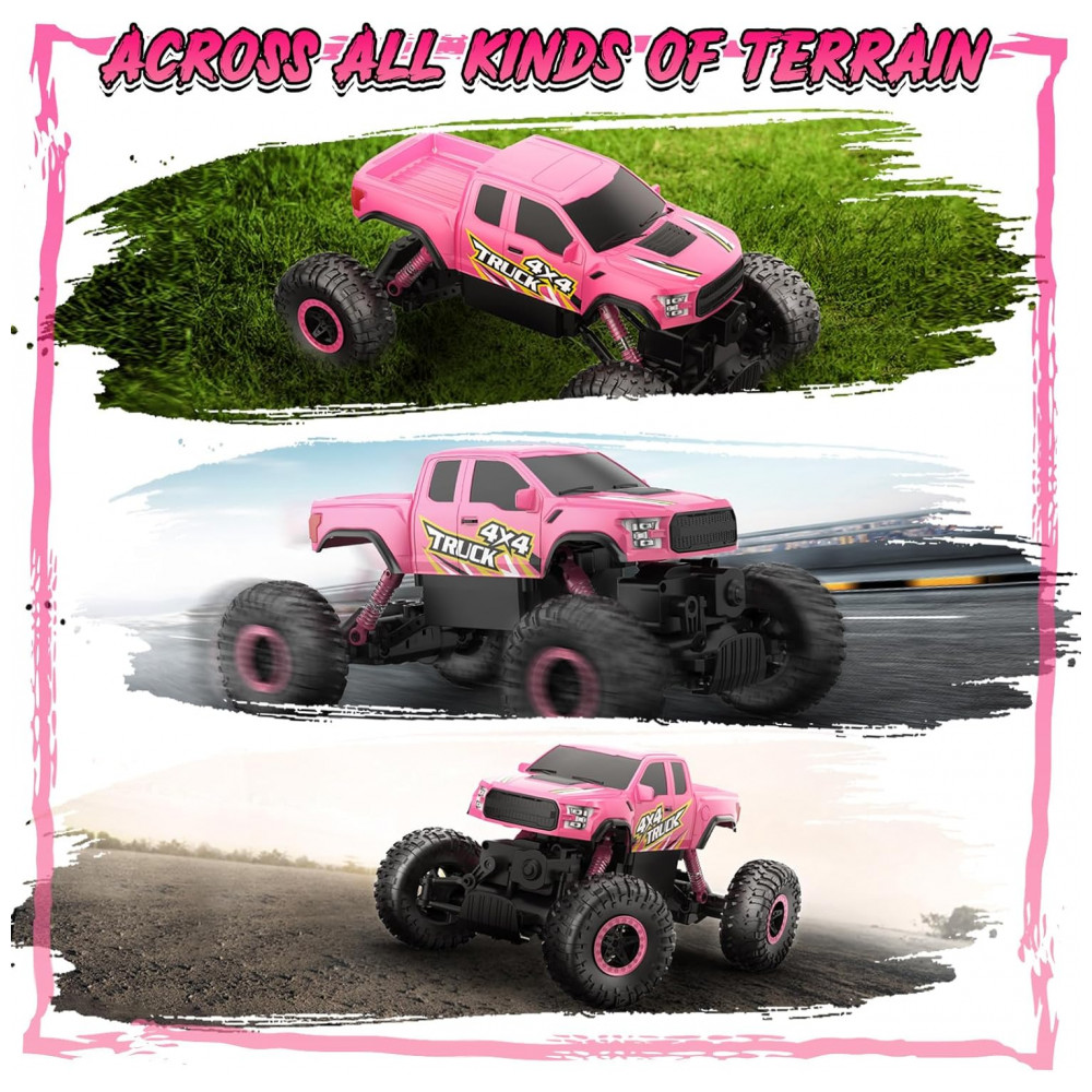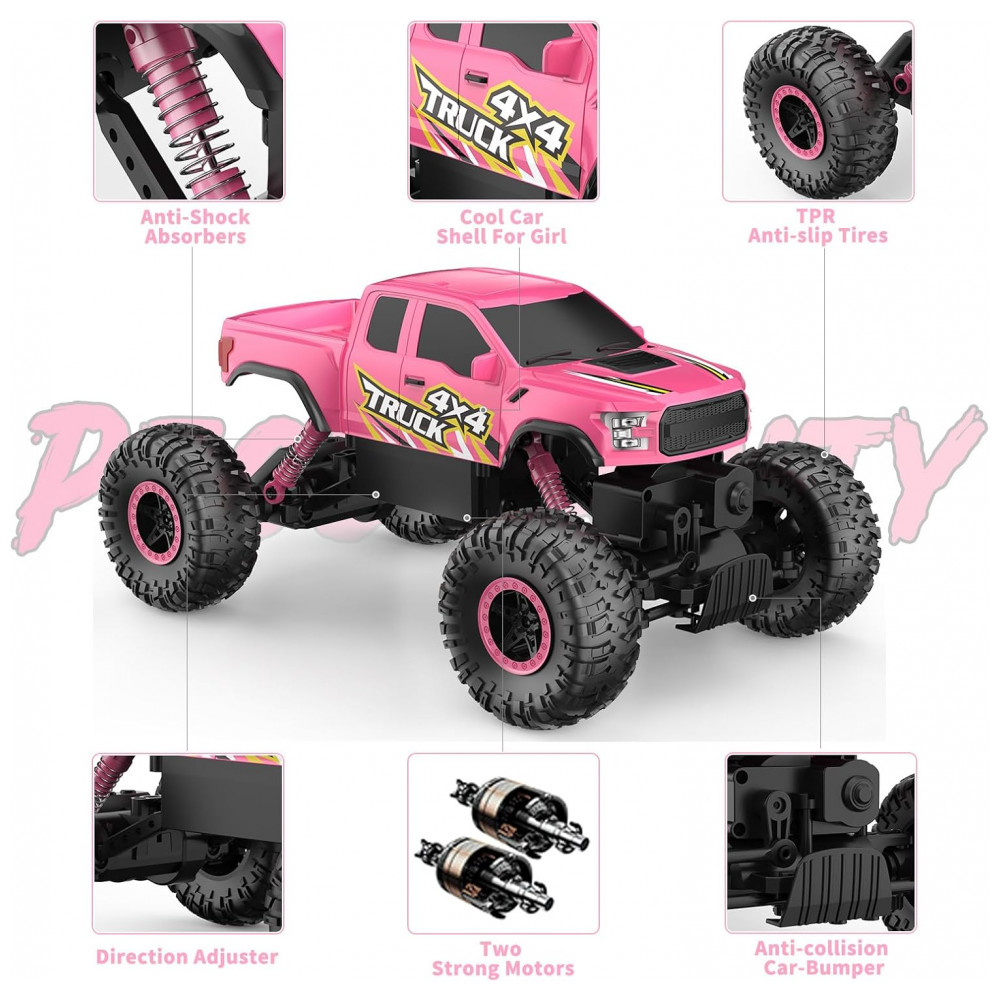 O Carrinho de Controle Remoto Double E Raptor F150 é perfeito para meninas que amam aventuras off-road! Com dois motores potentes, tração nas quatro rodas e pneus de alta aderência, ele enfrenta facilmente encostas de até 45 graus, grama, areia e terrenos acidentados. Seu design inovador em rosa e escala 1:18 proporcionam uma experiência visual incrível. Com bateria recarregável de 7.4V 900mAh, garante até 20 minutos de diversão. Equipado com amortecedores de metal e transmissor de rádio 2.4Ghz, permite corridas emocionantes e sem interferência. O presente perfeito para crianças de 6 a 12 anos!