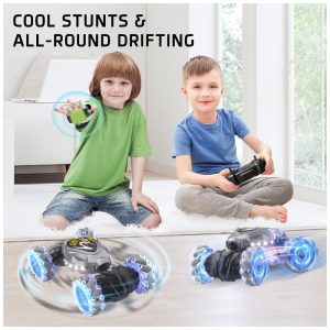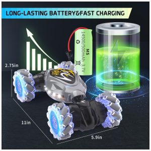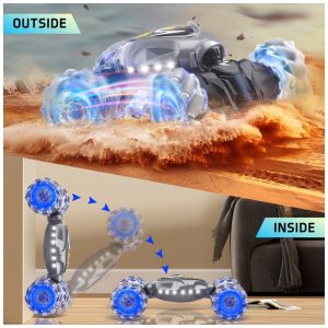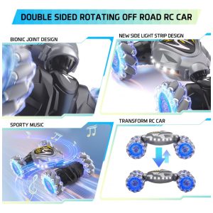 Carrinho de Controle Remoto e Sensor de Gestos 2.4Ghz 4WD com Música e Giratório 360 para Crianças de 6 a 12 Anos Terucle Cinza