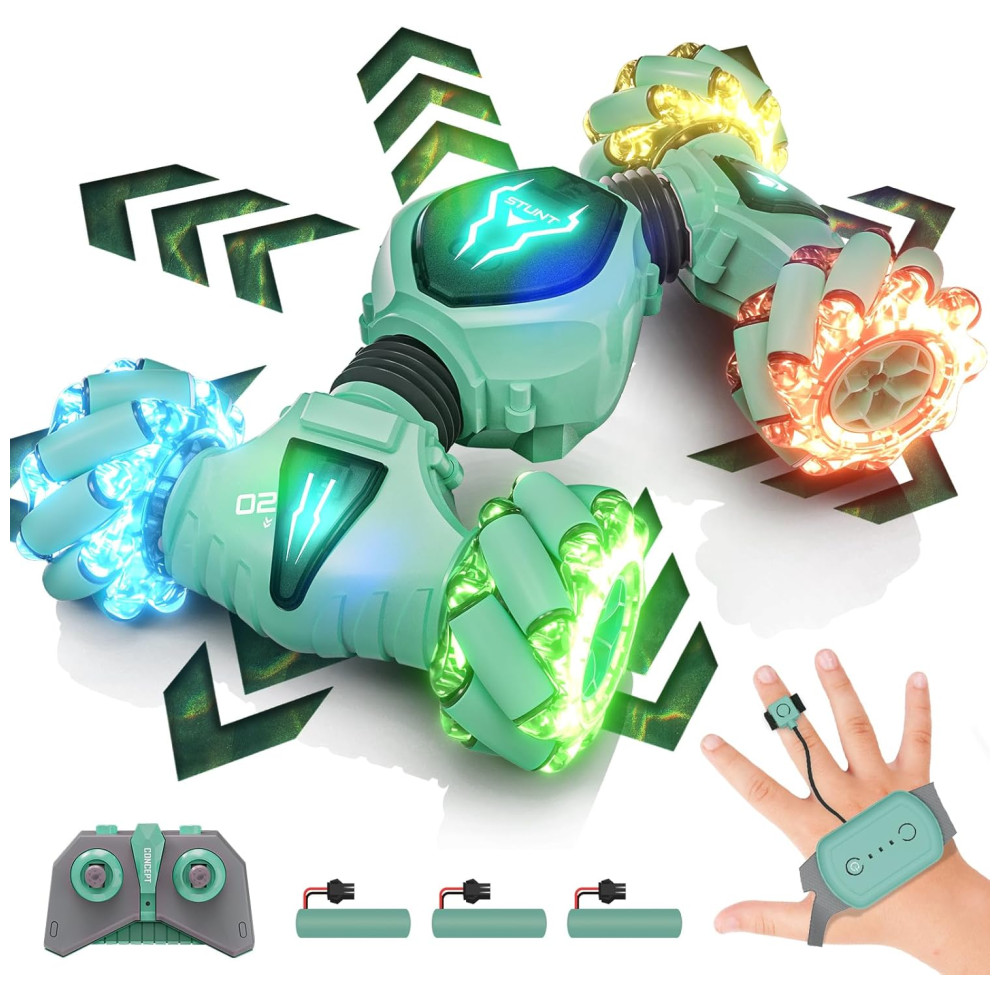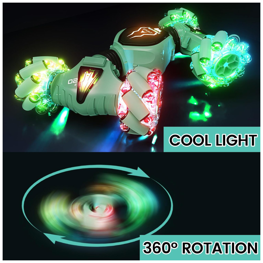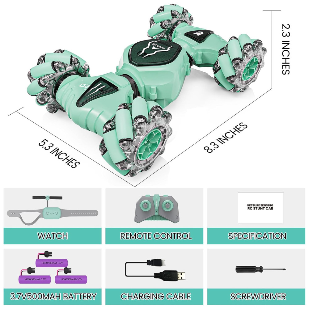 Carrinho de Controle Remoto e Sensor de Gestos com Modo Giratório Dupla Face 360 e Luzes Tecnock Verde