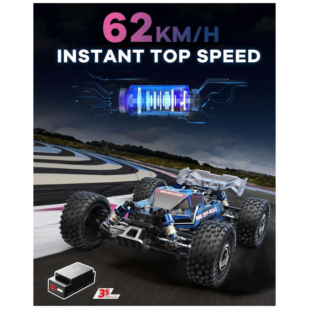 Carrinho de Controle Remoto Escala 1:16 com Bateria Atinge 62 km/h MJX Hyper GO 16207 TesPower Azul