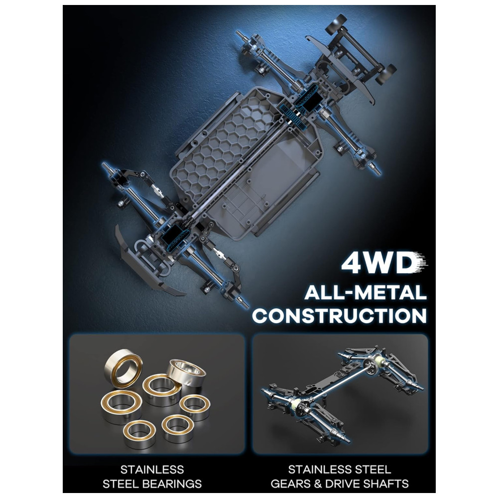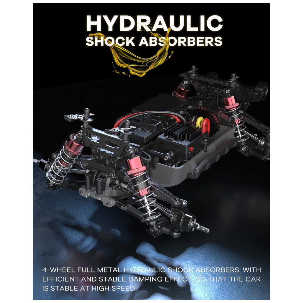 O carro RC MJX Hyper GO 16207 é um modelo de alta velocidade, com capacidade de alcançar até 62 km/h. Com controle de rádio 2.4G, é ideal para competições na pista ou em espaços abertos. Seu design em escala 1:16 conta com materiais de PVC e borracha, garantindo resistência e durabilidade. A bateria recarregável padrão 3S de 11.1V 1050mAh 25C e o motor sem escova 2845 de quatro polos trabalham juntos para proporcionar uma experiência de direção poderosa e eficiente. Os amortecedores hidráulicos totalmente metálicos garantem desempenho superior em terrenos acidentados, enquanto o para-choque de metal resistente a choques protege o carro contra danos. O sistema de transmissão totalmente metálico, incluindo diferenciais de engrenagem de metal, garante durabilidade e confiabilidade. Com receptor independente padrão, o carro oferece opções fáceis de modificação e atualização, sendo uma escolha perfeita para entusiastas da tecnologia automotiva. A distância do controle remoto é de cerca de 45 metros, com bateria 2AA não inclusa. O tempo de carregamento é de 3 horas e o tempo de trabalho é de 12 minutos.