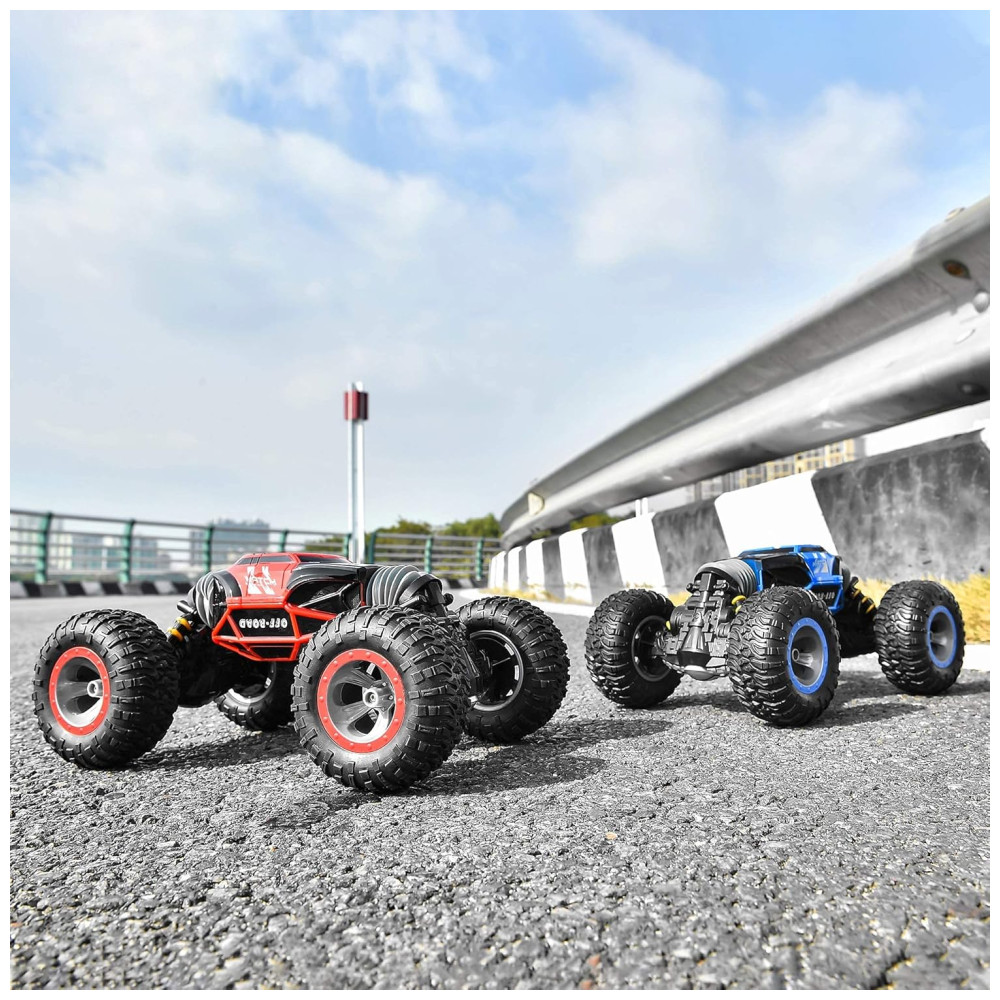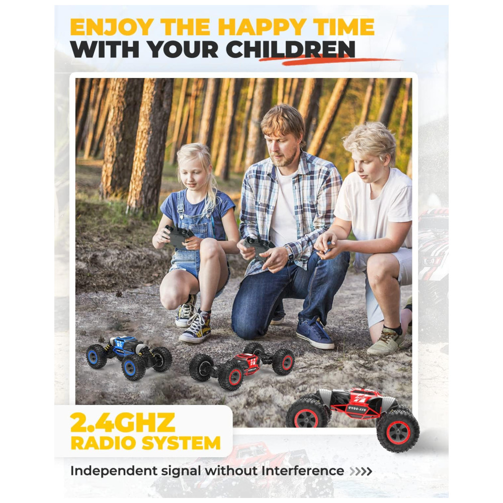 Este carro rc permite que você dirija em ambos os lados devido ao design exclusivo, então você não precisa se preocupar com capotamento do carro, não importa como o veículo vire, você pode continuar a operá lo sem entrar para virar.