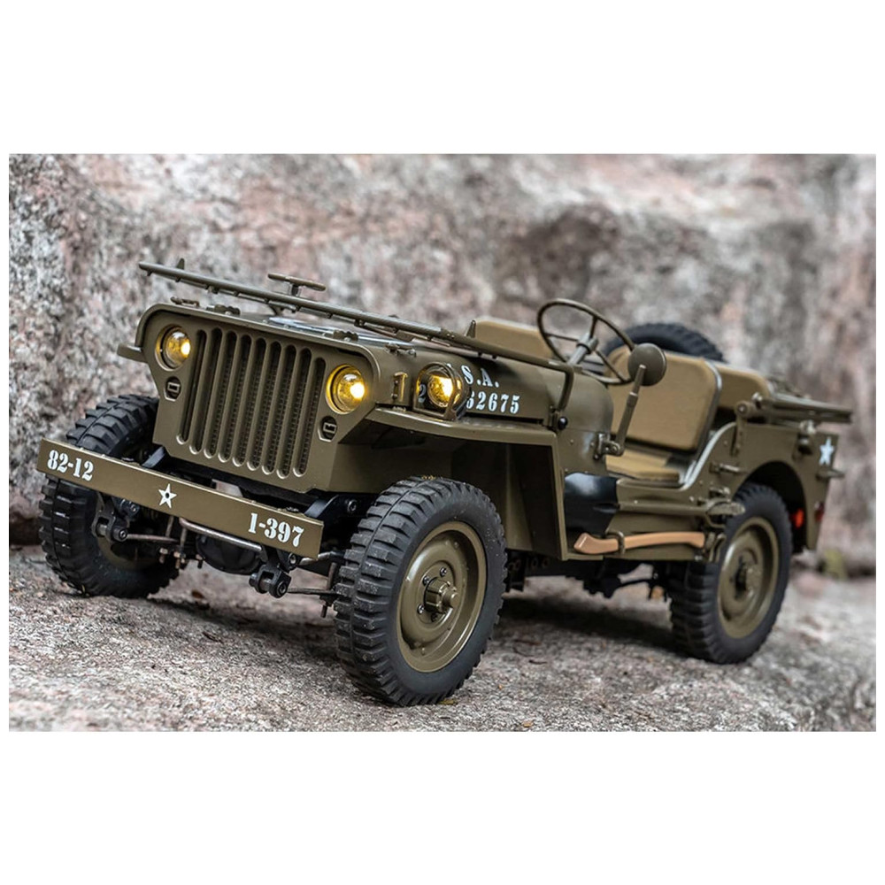 RC Rock Crawler em escala 4×4 1, 12 O Willys MB 1941 é uma nova plataforma controlada por rádio pronta para operar, em escala 1, 12, que oferece tudo destreza técnica em rastejar rochas e aparência em escala detalhada. A carroceria do 4×4 foi projetada para ter aparência e funcionalidade, apresentando um fantástico sistema de LED quatro luzes de direção, dois faróis e uma lâmpada de blackout que ajuda a explorar a escuridão da noite.