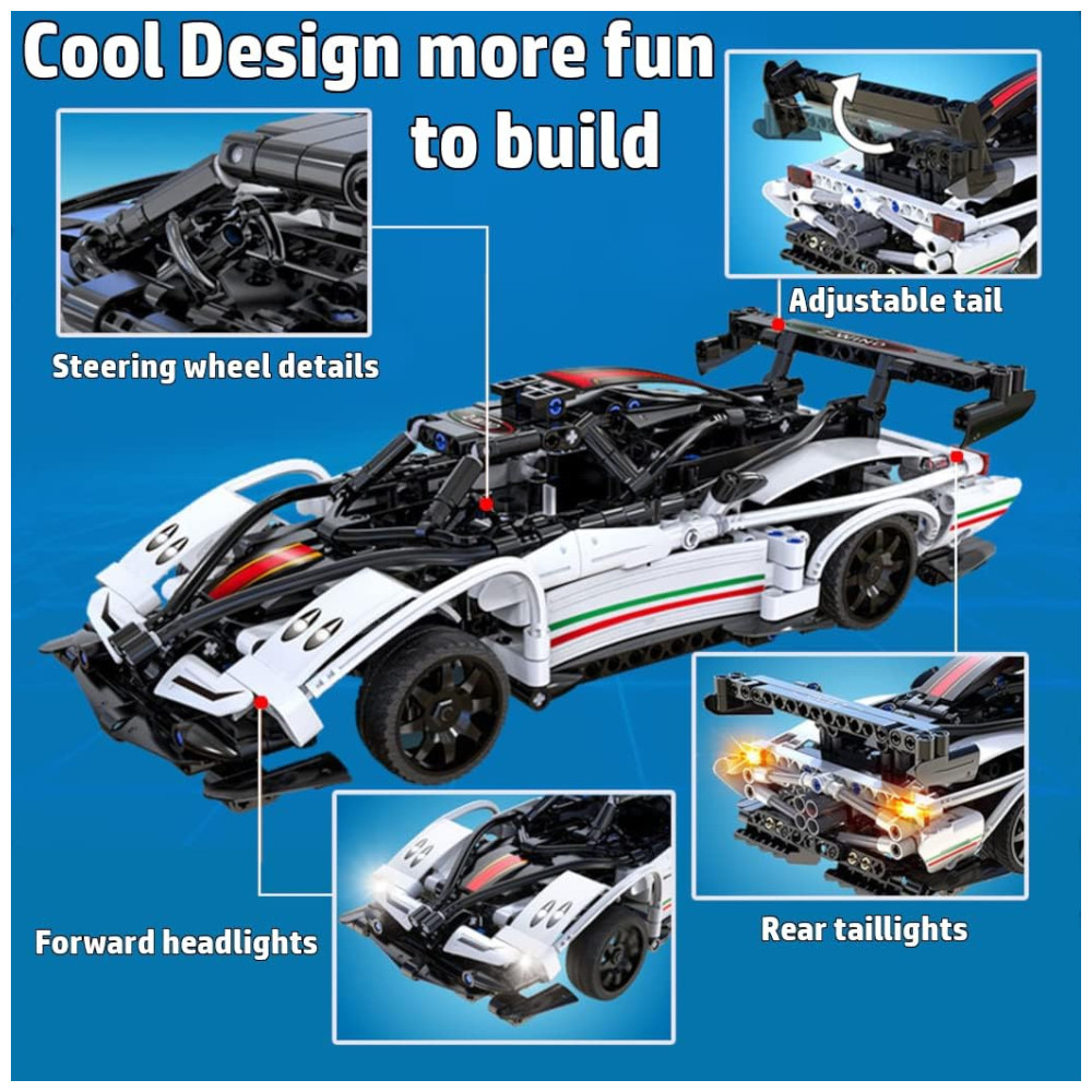 O MELHOR DE AMBOS OS MUNDOS Um brinquedo de construção com haste de relâmpago branco para crianças que também funciona como um carro de corrida RC super legal Este kit de construção infantil de 457 peças mantém as crianças ocupadas por mais tempo, trabalhando como um brinquedo de montagem e um carro de corrida com controle remoto funcional depois de montado.