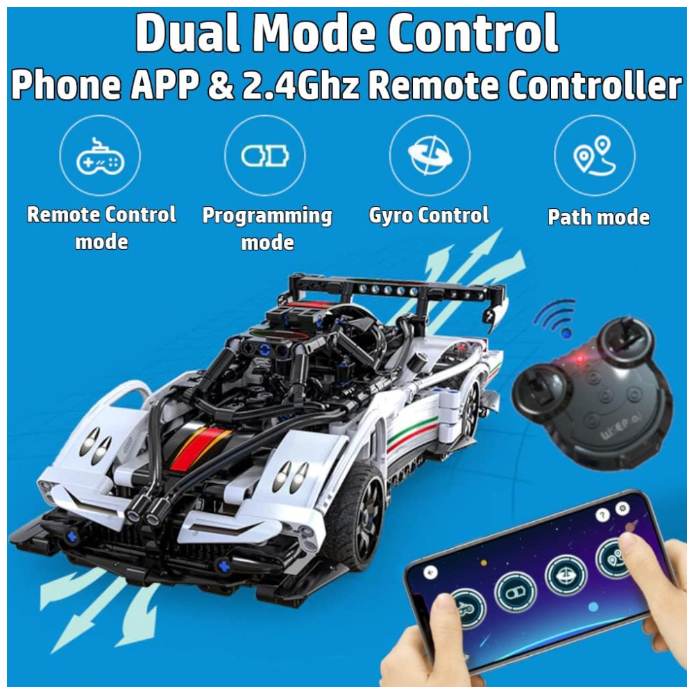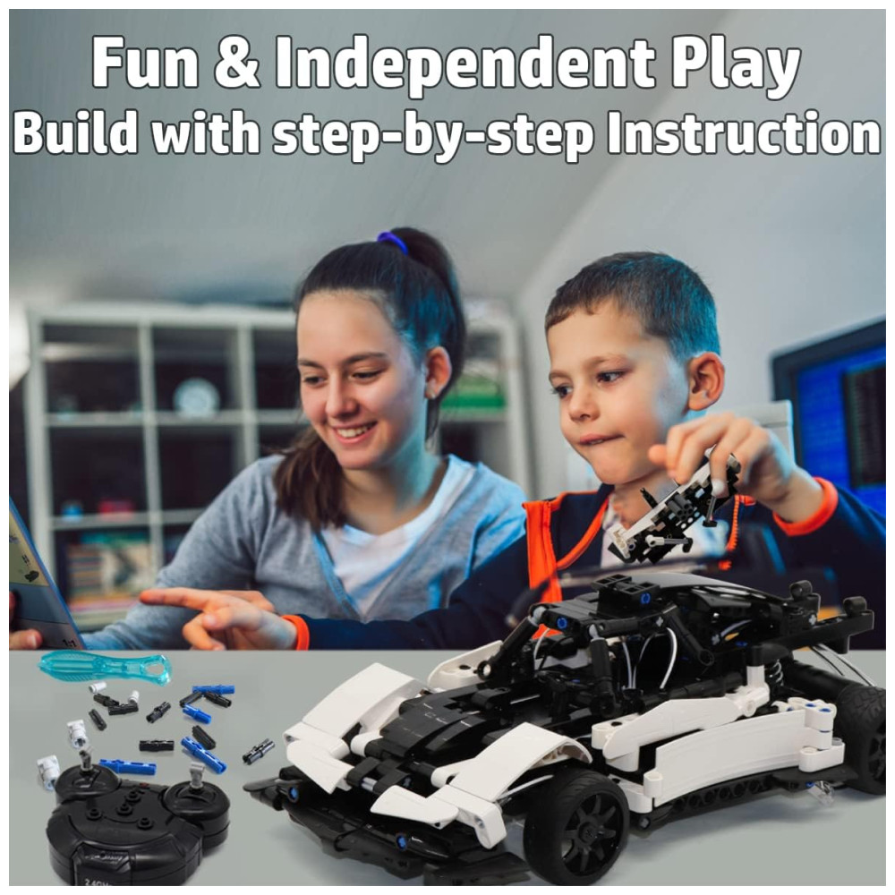 Carrinho de Controle Remoto Montável 542 Peças de 8 a 12 anos WISEPLAY Branco