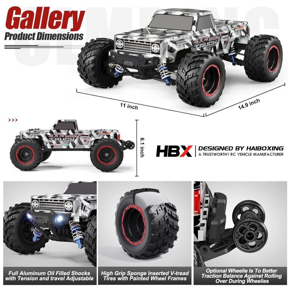 Carrinho de Controle Remoto Off Road 4×4 sem Escova Escala 1:12 com Velocidade até 55 km/h Haiboxing 903A Preto e Cinza