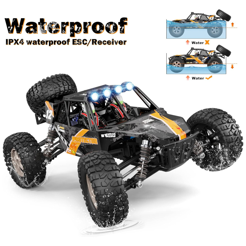 Caminhões RC 4×4 fora de estrada à prova dágua Sistema totalmente proporcional de rádio controlado de 2,4 GHz funciona sem interferência de sinal. Os componentes eletrônicos à prova dágua IPX4 apresentam proteção anti bloqueio, sobrecorrente e corte de baixa tensão. Ele vai lançar um feitiço em usuários de diferentes idades, um carro de controle remoto perfeito para meninos e adultos.