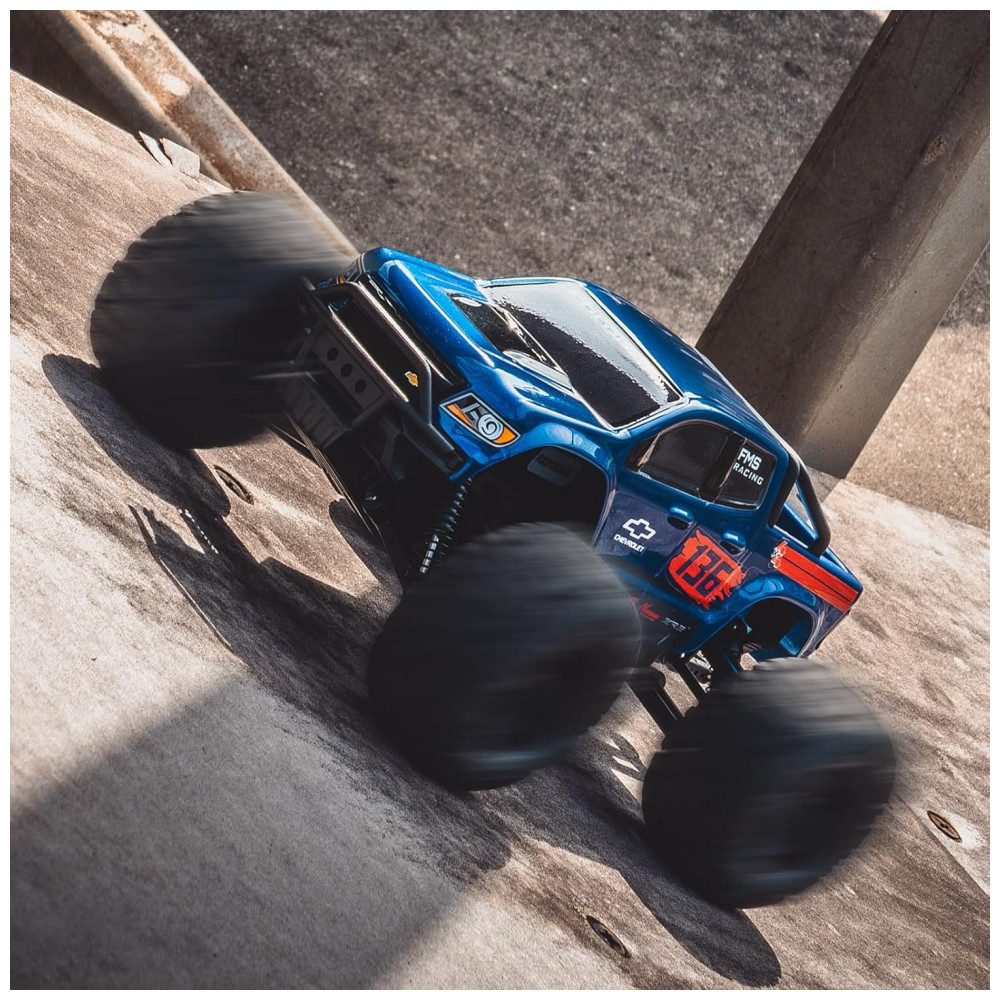 Este Monster Truck RC com carroceria Chevrolet oficial autorizada está disponível em três cores vibrantes e é equipado com decalques que melhoram a aparência e identificação do carro. A carroceria utiliza nylon de alta resistência, o que prolonga a vida útil do carro RC, além de ser ecologicamente correta e reciclável, reduzindo o impacto ambiental.