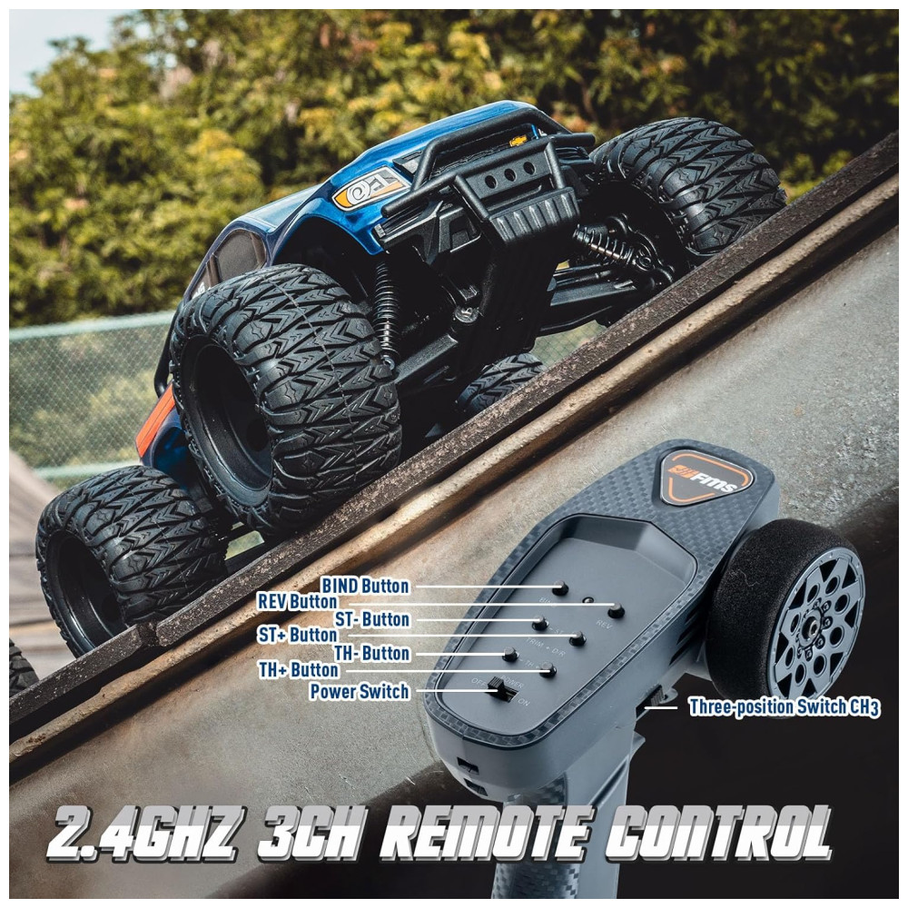 O veículo RC vem com uma transmissão mecânica de duas velocidades, permitindo condução offroad lenta e desempenho em alta velocidade. Sua capacidade de lidar com diferentes terrenos é melhorada por um sistema de suspensão independente nas quatro rodas e diferenciais de engrenagem planetária nos eixos dianteiro e traseiro. Além disso, a carcaça do carro possui um design de liberação rápida fácil de usar, facilitando reparos ou substituições. Este Monster Truck RC oferece maior flexibilidade, estabilidade e adaptabilidade.