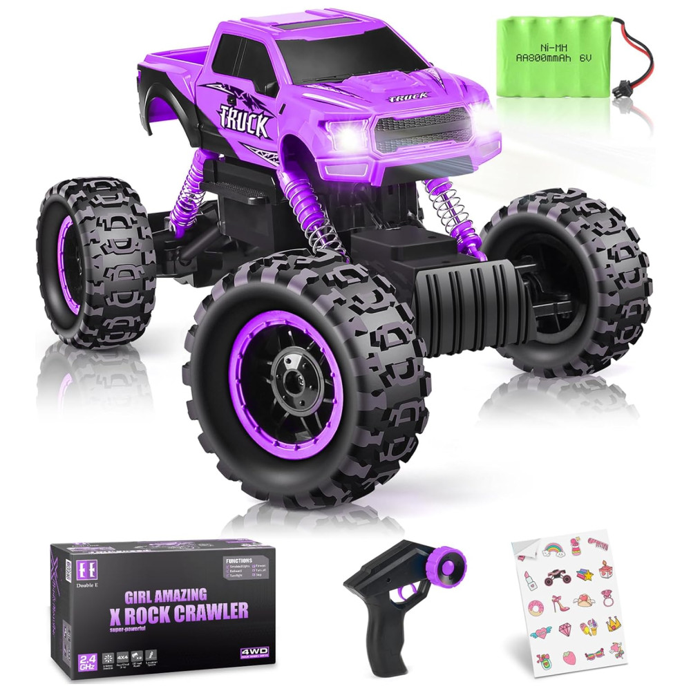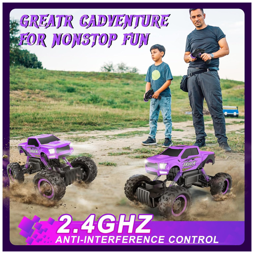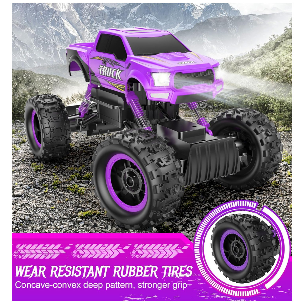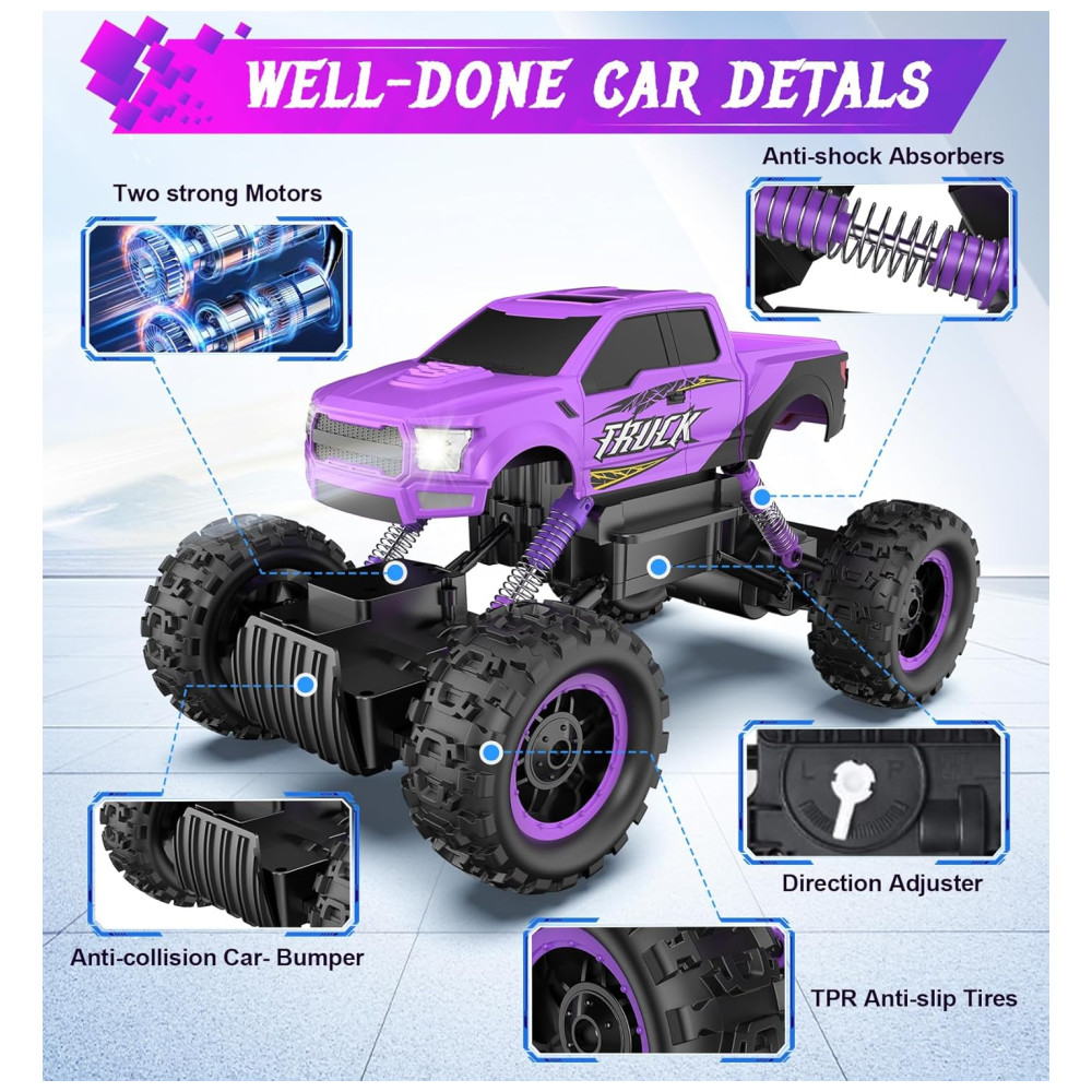 Carrinho de Controle Remoto Off Road Escala 1:12 com Duplo Motor e Luzes para Crianças de 5 a 12 Anos DOUBLE E Monster Truck Roxo