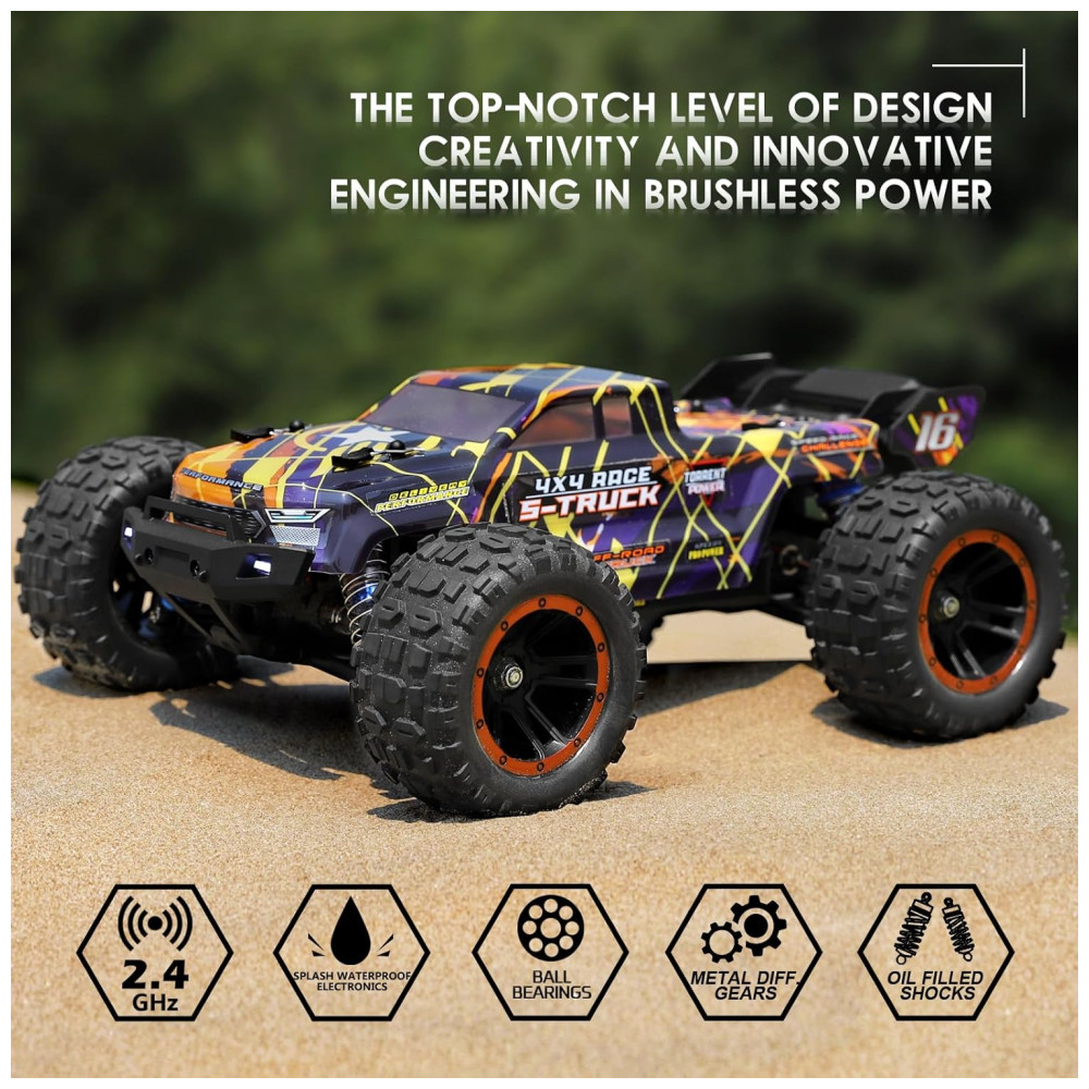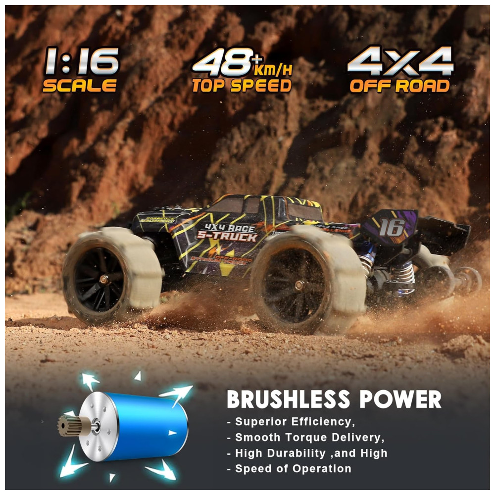 Carrinho de Controle Remoto Off Road Escala 1:16 sem Escova com Velocidade até 64 km/h e Bateria 3S Aplicável não incluída Haiboxing 16890A Amarelo