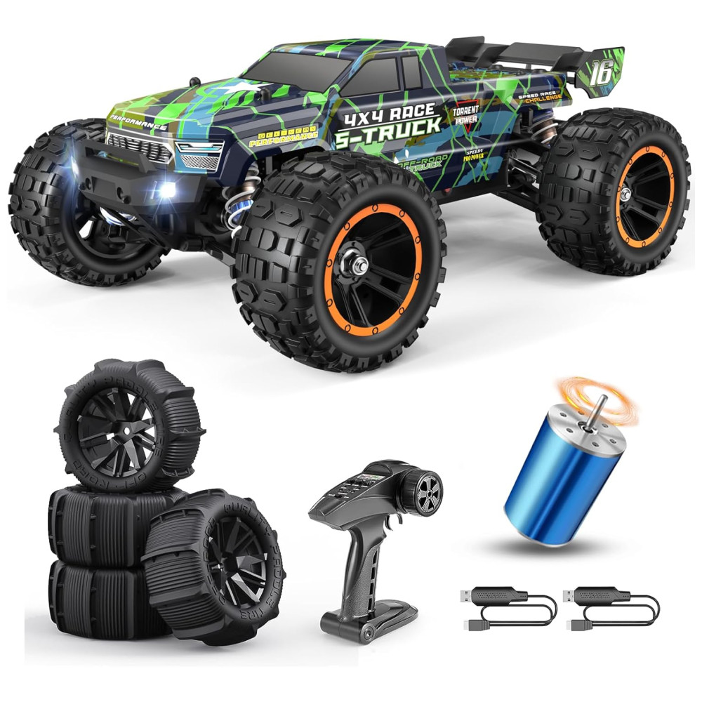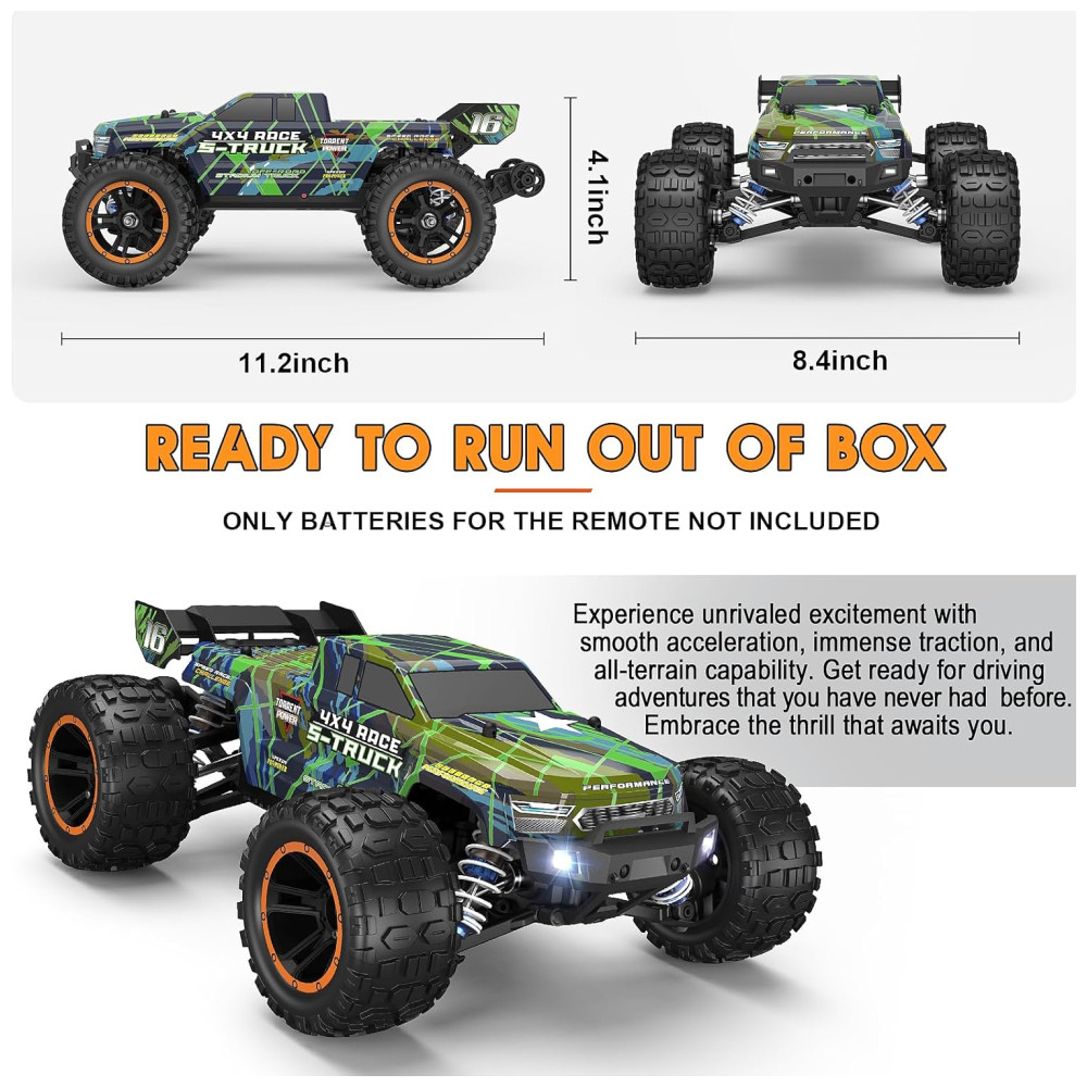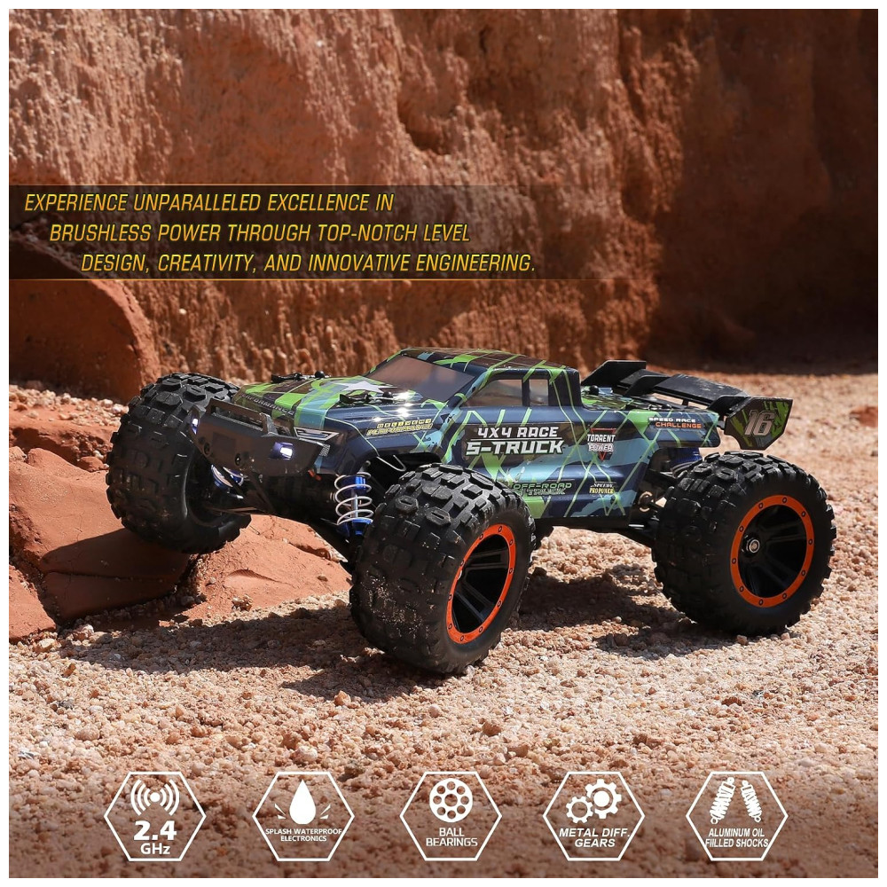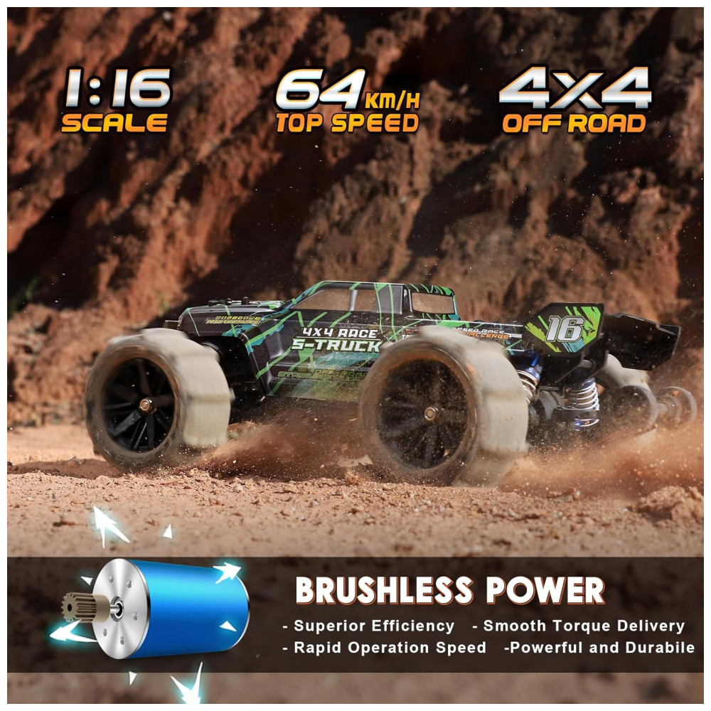 Carrinho de Controle Remoto Off Road Escala 1:16 sem Escova com Velocidade até 64 km/h e Bateria 3S Aplicável não incluída Haiboxing 16890SA Verde