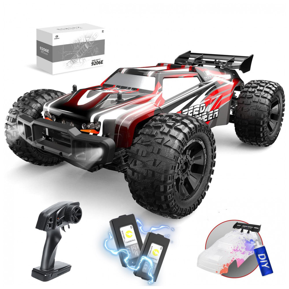 Carrinho de Controle Remoto Off Road Escala 1:10 com Velocidade até 48km/h e 2 Baterias DEERC Vermelho