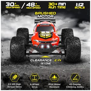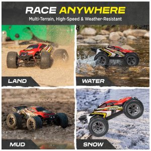 Ação extrema de queima de pneus Com um potente motor embutido escovado, nossos caminhões rc 4X4 offroad à prova dágua vêm totalmente montados, prontos para funcionar direto da caixa. Atinge velocidades de até 30 mph 48km, h, o que torna o carro mais rápido que os outros
