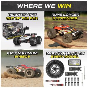 Força e aparência impressionante os monster trucks de controle remoto 4×4 112 possuem aderência, operação e durabilidade extraordinárias. Os choques de metal de alto desempenho e as rodas resistentes permitem que você dirija o carro Tornado rc em todos os terrenos, como praia, areia, rocha ou estrada de concreto
