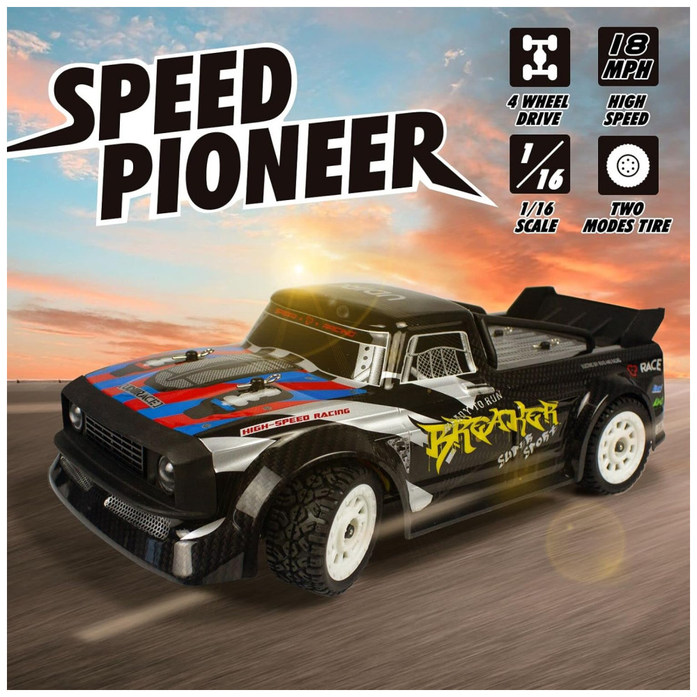 Carrinho de Controle Remoto para Adultos Off Road 116 Escala Até 30 km por hora Recarregável CHEERWING Preto