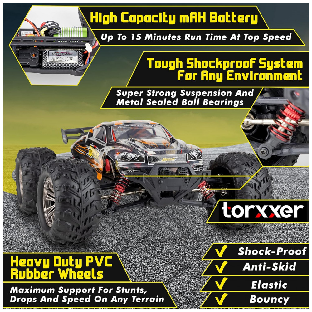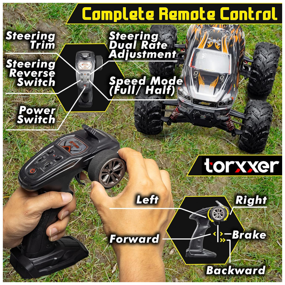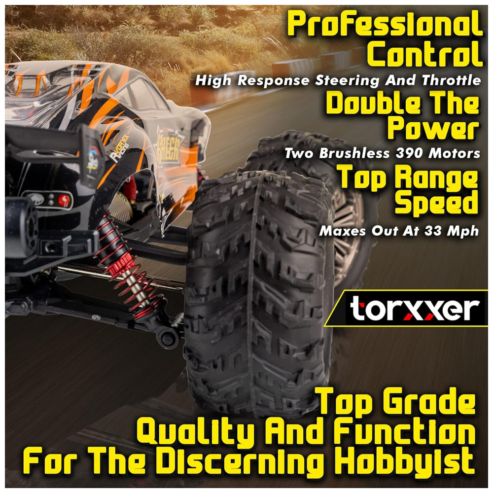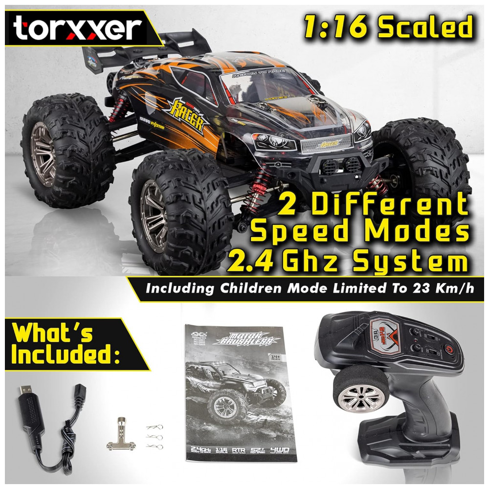 Carrinho de Controle Remoto para Adultos Off Road 116 Escala Até 33 km por hora Recarregável TORXXER Laranja