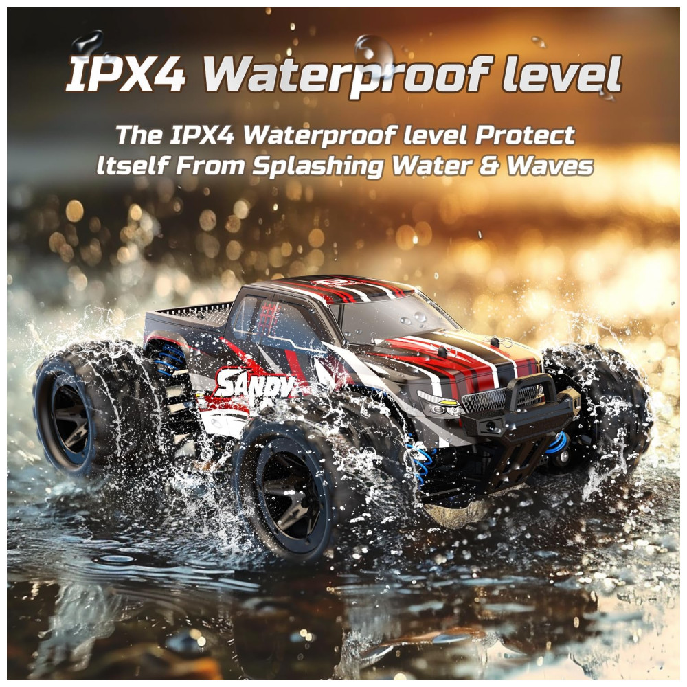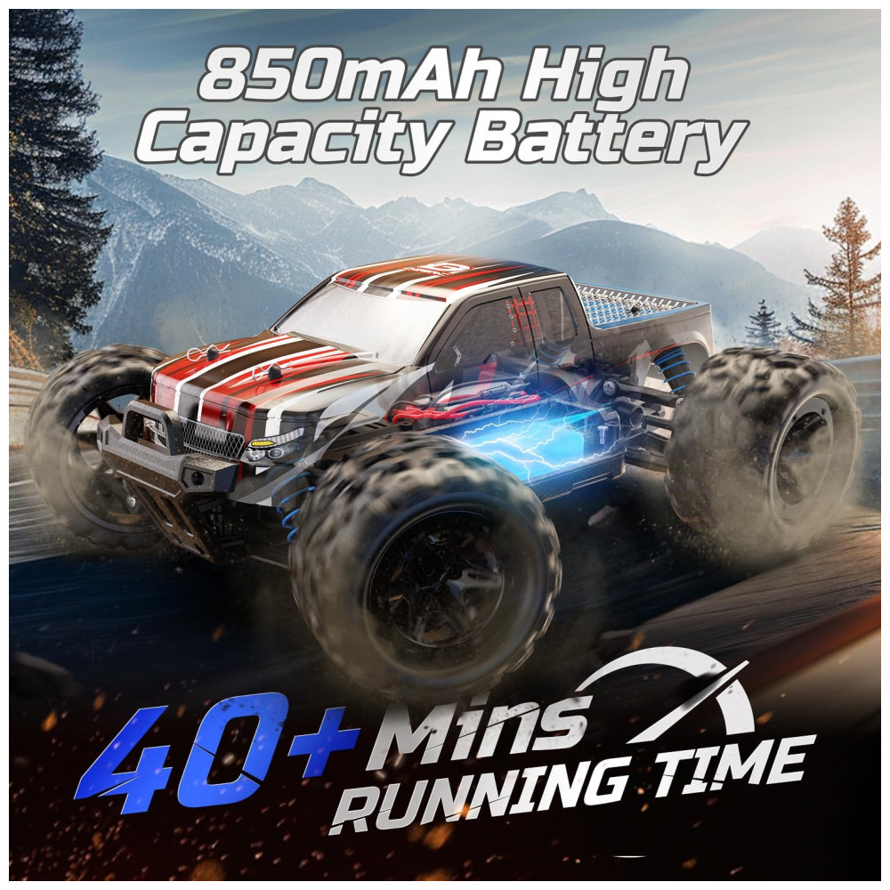 Moter com dissipador de calor profissional de metal O monster truck está equipado com um motor 380 que pode executar 21500 rotações por minuto, o que fez um grande aprimoramento para a aceleração e permite que o carro RC alcance uma velocidade máxima de 40 km , h. Há um dissipador de calor de metal que cobre totalmente o motor para aumentar a dissipação de calor do motor e estender sua vida útil. Observe que o motor fica aquecido quando o caminhão é conduzido por um longo período. Recomendamos que você faça uma pausa intermitente após 15 minutos de carro.