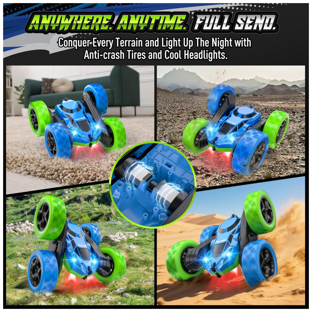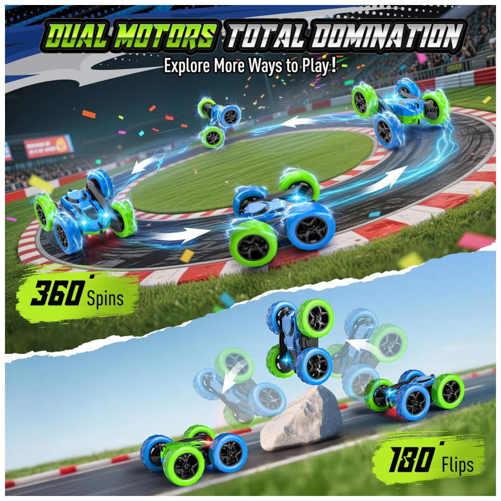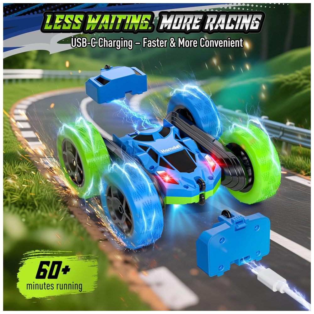 Carrinho de controle remoto STEM Hamdol 360° Stunt Car dupla face com luzes LED e giros 360°
