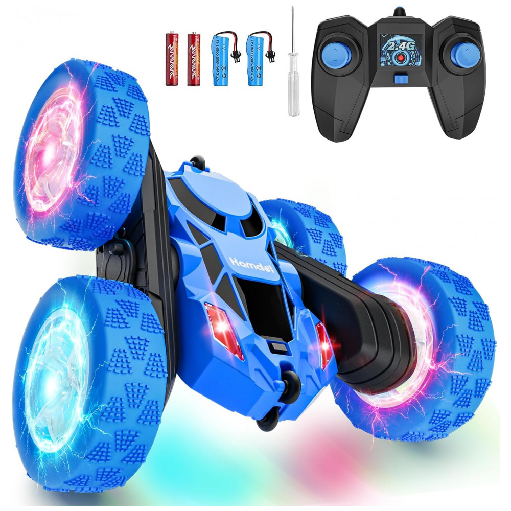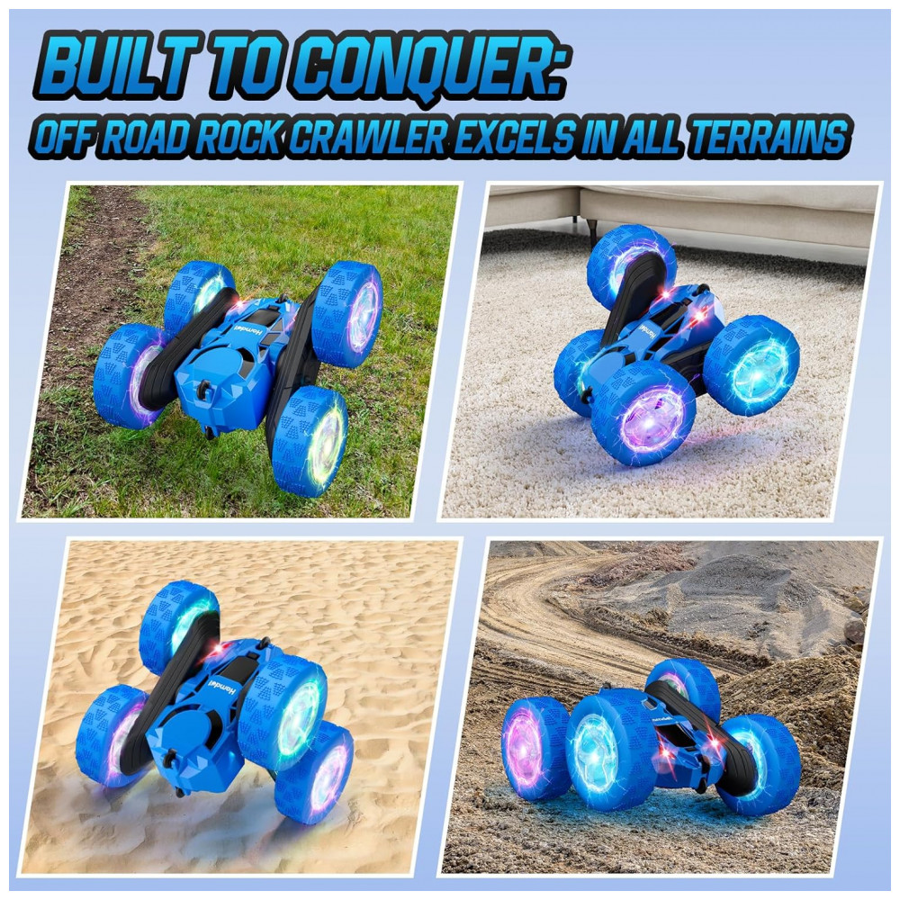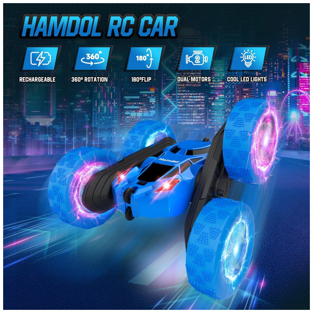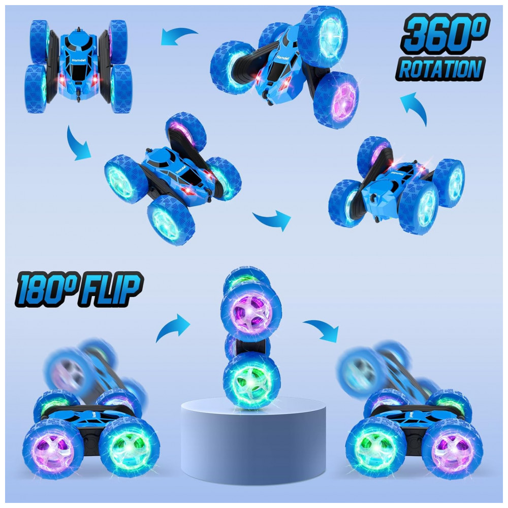 Carrinho de controle remoto STEM Hamdol Blue Racer 4WD com luzes LED e giros 360°