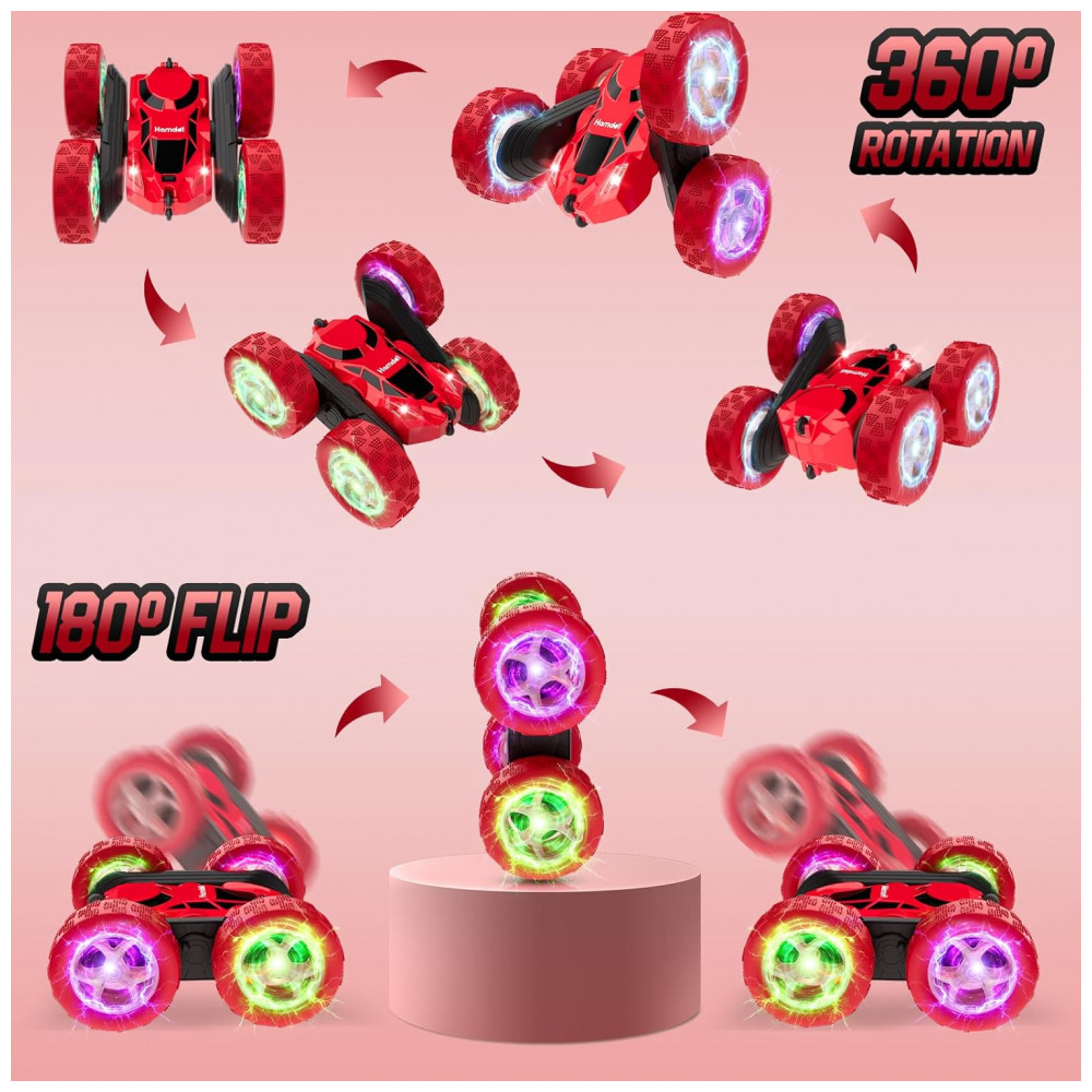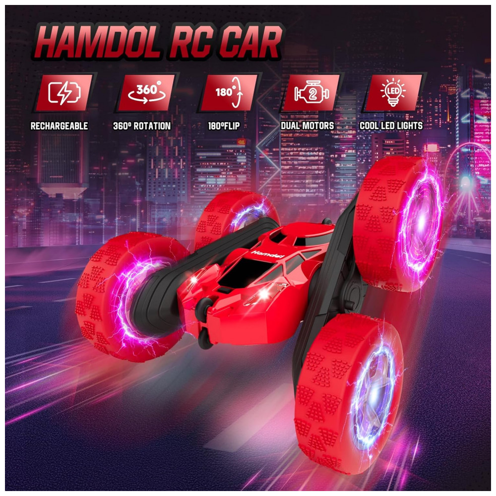 Carrinho de controle remoto STEM Hamdol Glow Red Fighter 4WD com luzes LED e giros 360°