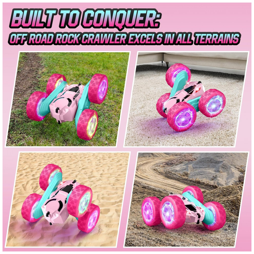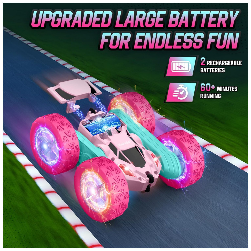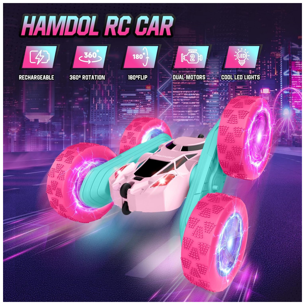 Carrinho de controle remoto STEM Hamdol Pink Blossom dupla face com luzes LED e giros 360°