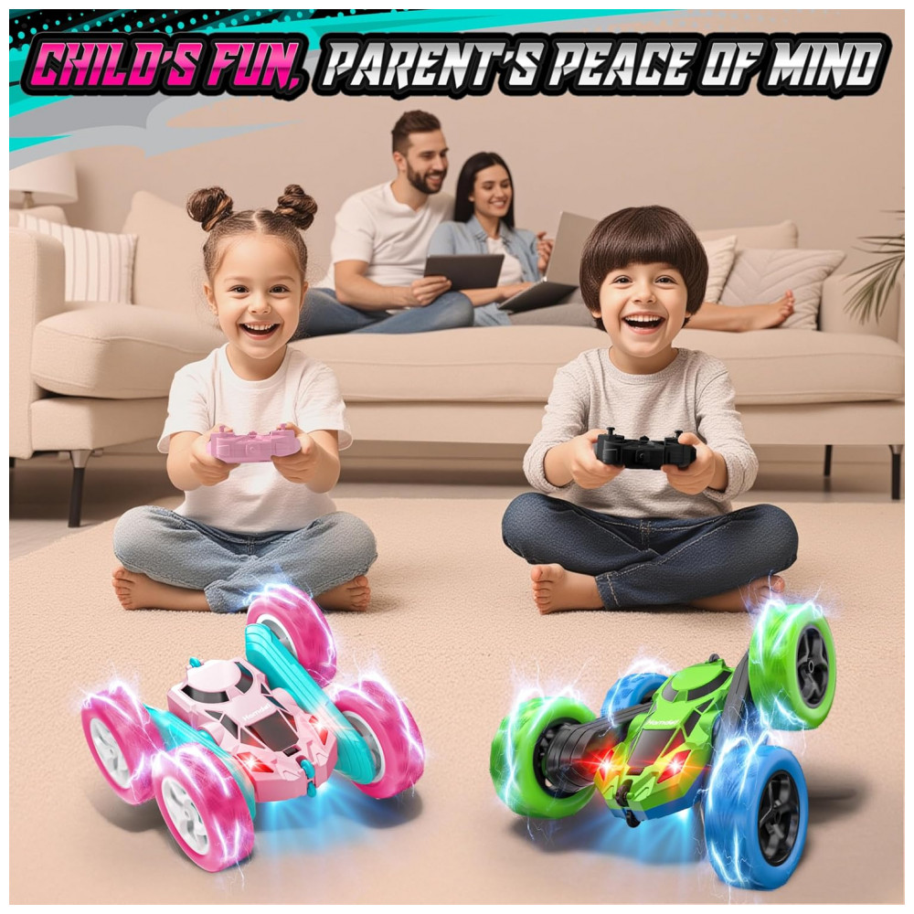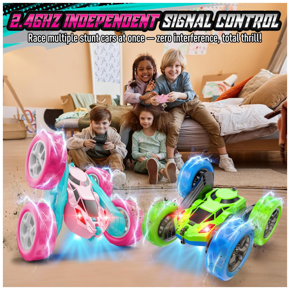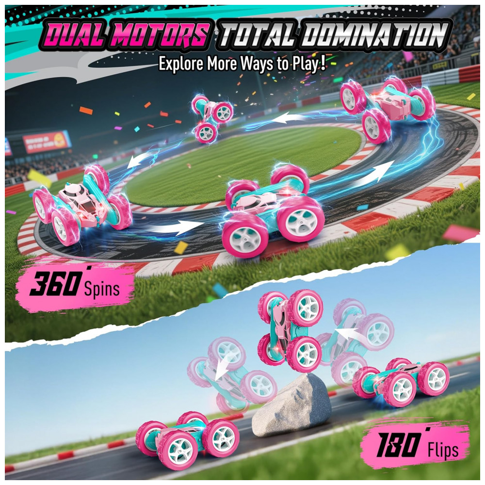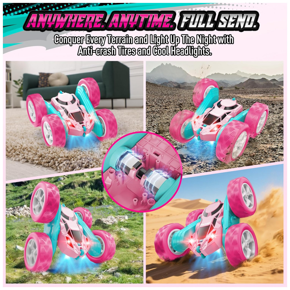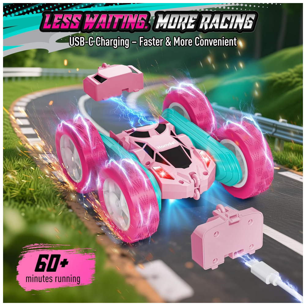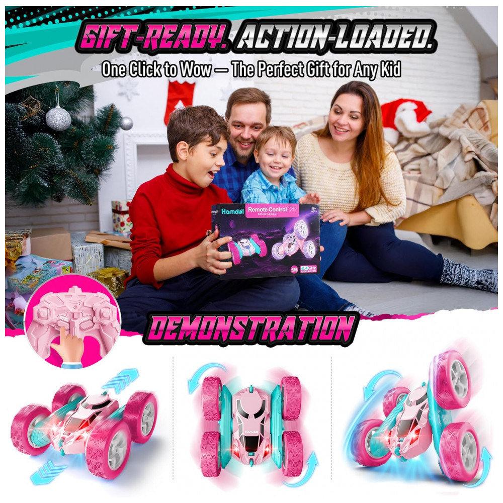 Carrinho de controle remoto STEM Hamdol Pink RC dupla face com luzes LED e giros 360°