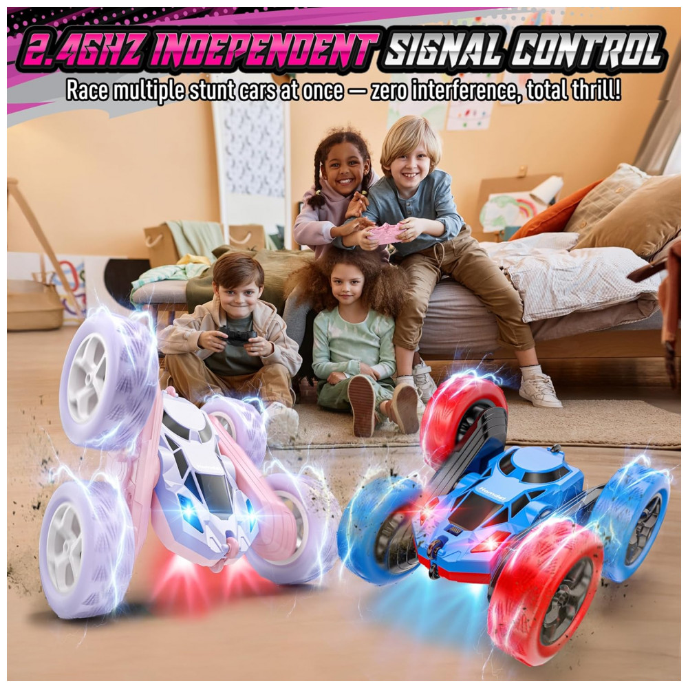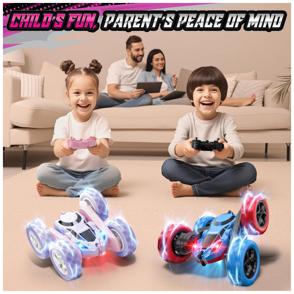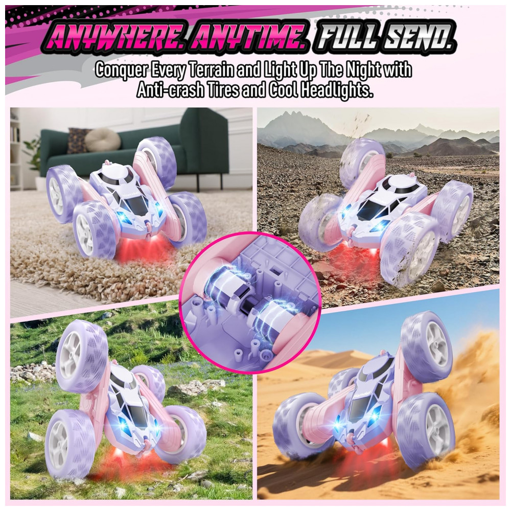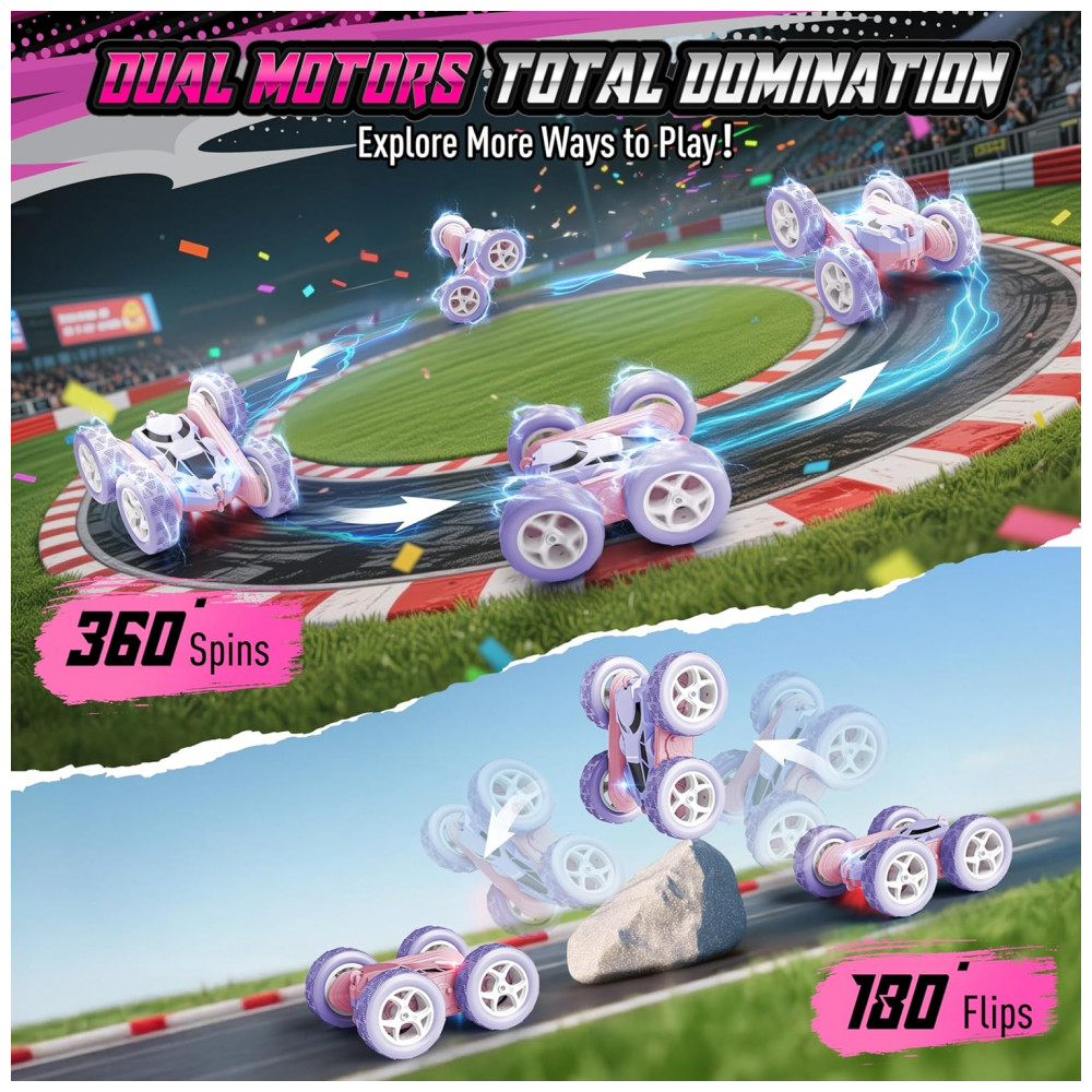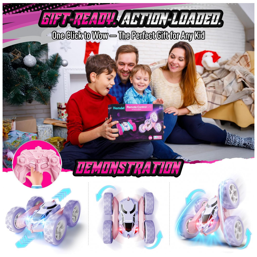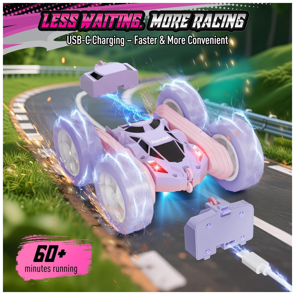 Carrinho de controle remoto STEM Hamdol Violet Dream dupla face rosa e roxo com luzes LED e giros 360°