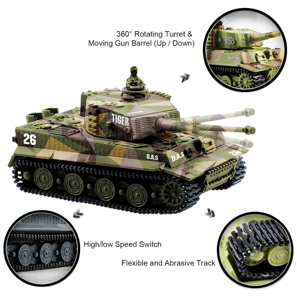 Este mini tanque de controle remoto escala 172 parece um tanque tigre real com grandes detalhes.