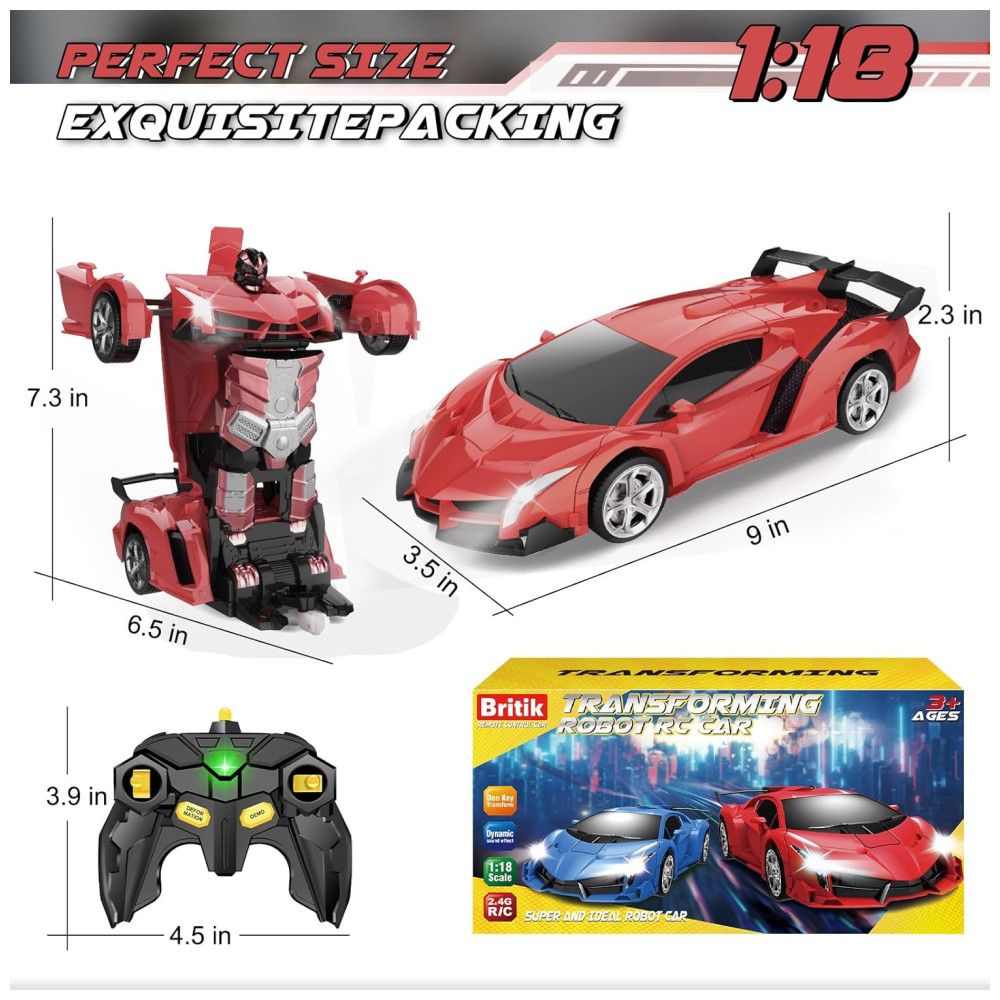 Carrinho de Controle Remoto Transformador para Crianças de 4 a 8 Anos – Britik