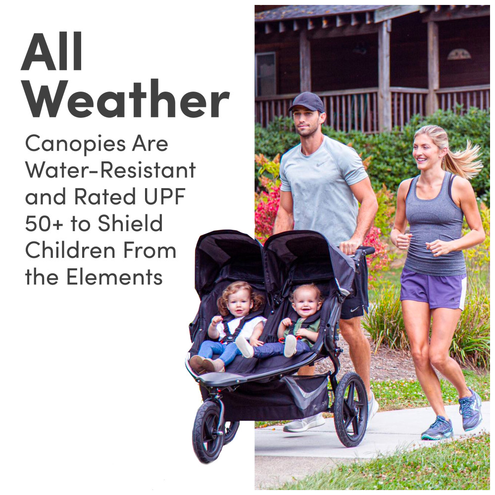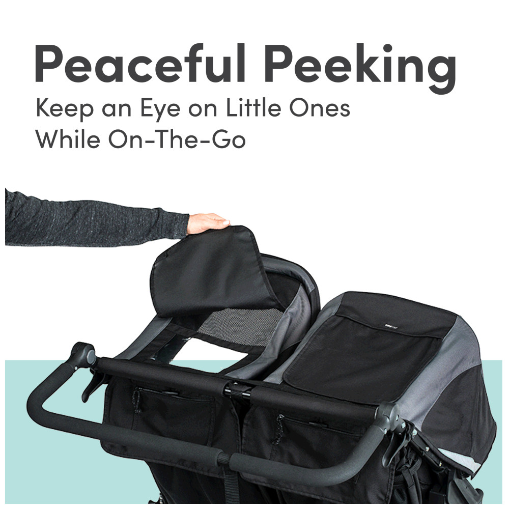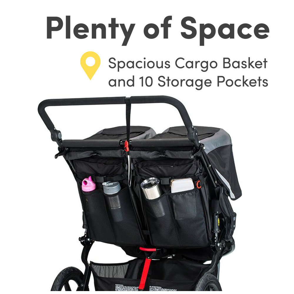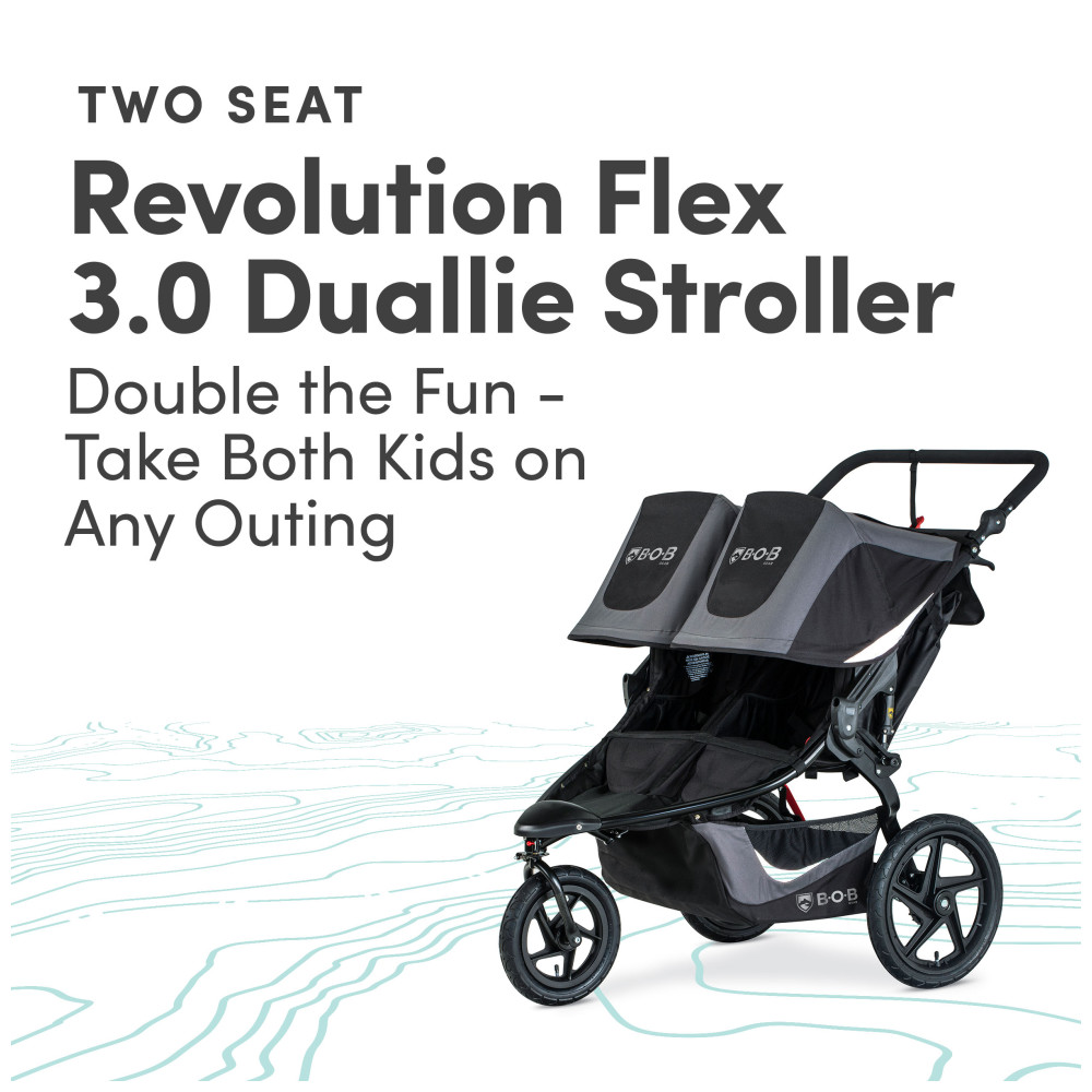 Com o carrinho de corrida BOB Revolution Flex 30 Duallie de dois lugares, você pode levar as duas crianças em qualquer passeio, seja se preparando para uma corrida de 10 km ou saindo para um dia no zoológico. A suspensão estilo mountainbike mantém você correndo suavemente em qualquer terreno e o guidão ajustável se adapta a pais de todas as alturas Inspirados em caiaques, os assentos são projetados com acolchoamento de compressão para conforto durante todo o dia e ficam totalmente eretos para que seus pequenos pilotos possam conhecer o mundo. As coberturas UPF 50 extragrandes com detalhes refletivos protegem dos elementos e incluem janelas magnéticas de bate papo para que você possa verificar e conversar com seus filhos ao longo do caminhoCom um espaçoso cesto de carga e dez bolsos de armazenamento, você terá bastante espaço para todos os seus equipamentos e poderá manter seu celular à mão A roda dianteira giratória manobra facilmente em ruas movimentadas e trava para estabilidade ao correr