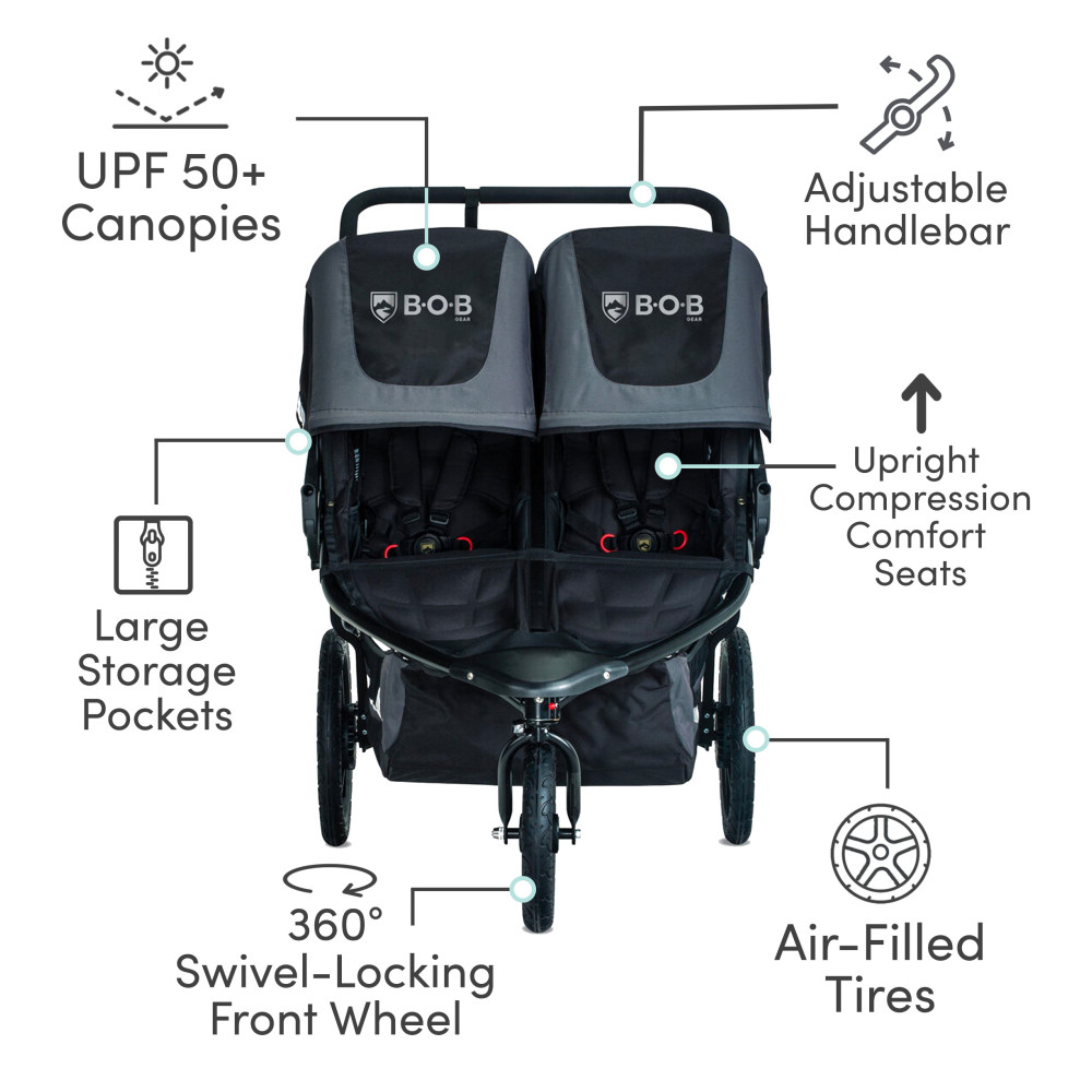 pnbspnbspnbspnbspnbspnbspnbspnbspbPneus de suspensão com amplificador de ar estilo mountain bikeb proporcionam um passeio ultra suave em qualquer tipo de terreno, de calçadas a trilhas de caminhadappnbspnbspnbspnbspnbspnbspnbspnbspbO guiador ajustável de 9 posições cria o ajuste perfeito para pais de todas as alturas ppnbspnbspnbspnbspnbspnbsp nbspnbspb10 bolsos de armazenamentob bamp basquete de carga extragrande permite que você acesse e organize facilmente todos os seus equipamentos mantém seu telefone celular próximo eppnbspnbspnbspnbspnbspnbspnbspnbspbAssentos totalmente verticaisb permitem seu as crianças podem ver o mundo em todas as suas aventuras e reclinar se quase totalmente com o apertar de um botãoppnbspnbspnbspnbspnbspnbspnbspnbspbAssentos de compressão ultraacolchoadosb com ventilação proporcionam conforto o dia todoppnbspnbspnbspnbspnbspnbspnbspnbspbAs janelas de bate papo Peekampb com fechos magnéticos permitem que você verifique e converse com seus filhos enquanto estiver no gonbsp ppnbspnbspn bspnbspnbspnbspnbspnbspbExtralargeUPF 50 dosséisbnbspproteja seus filhos do sol e chuvappnbspnbspnbspnbspnbspnbspnbspnbspbDetalhes reflexivosb nos toldos e na cesta de carga mantêm você visível e seguroppnbspnbspnbspnbspnbspnbspnbspnbspbTwoseatDuallie designb transporta 2 crianças com capacidade de peso de 50 lb para cada assento, mas é fino o suficiente para passar por portas padrãoppnbspnbspnbspnbspnb spnbspnbspnbspbRoda dianteira com trava giratóriab giranbsppara fácil manobrabilidade ou travas para estabilidade ao correr dentro ou fora da estradappnbspnbspnbspnbspnbspnbspnbspnbspbSistema de viagem prontobnbspquando emparelhado com o BOB Assento de carro infantil da Britax ou outro assento de carro de marca importante Requer o adaptador de assento de carro infantil BOB Duallie vendido separadamenteppnbspnbspnbspnbspnbspnbspnbspnbspbArnês de cinco pontosbnbspcom design sem rosca mantêm seus filhos seguros e permitem ajustes fáceis de alturappnbspnbspnbspnbspnbspnbspnbspnbspbDobra fácil em 2 etapasbnbsppara transporte e armazenamento convenienteppnbspnb spnbspnbspnbspnbspnbspnbspbRodas auriculares fáceis de removerbnbpermitem que você guarde o carrinho em espaços apertados no porta malasppnbspnbspnbspnbspnbspnbspnbspnbspbAjustável rastreamento da roda dianteirab refina o alinhamento com um simples giro do botão, mantenha facilmente o carrinho em linha reta quando a roda dianteira estiver travada para correr nbspppnbspnbspnbspnbspnbspnbspnbspnbspbFreio de estacionamento compatível com flipflopbnbspfixa ambas as rodas traseiras na posição parada com um único degrauppnbspnbspnbspnbspnbspnbspnbspnbspbQuadro de alumínio resistentebnbspé leve e durávelppnbspnb spnbspnbspnbspnbspnbspnbspbA pulseirabnbspfornece segurança durante a corrida e inclui uma fivela para travar o carrinho fechado quando dobradonbspppbrppnbspp