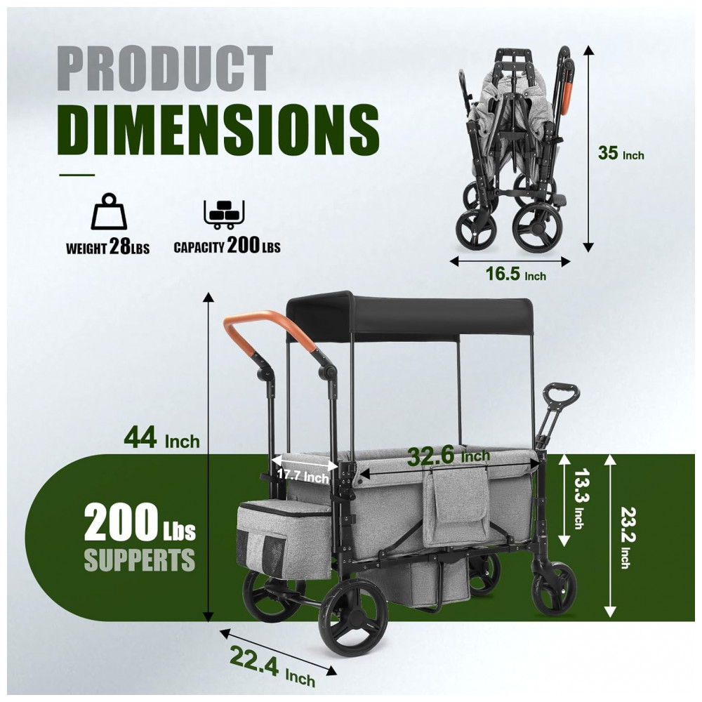 • Conteúdo da caixa: Carrinho completo, cobertura, barra de puxar, barra de empurrar, estrutura