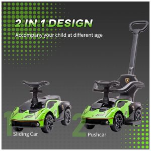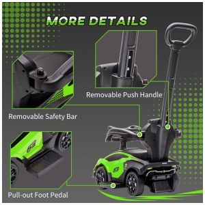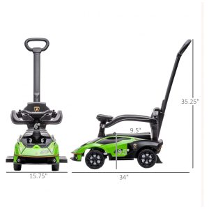 Carrinho de Passeio Infantil 2 em 1 com Buzina Som do Motor e Volante Aosom Verde